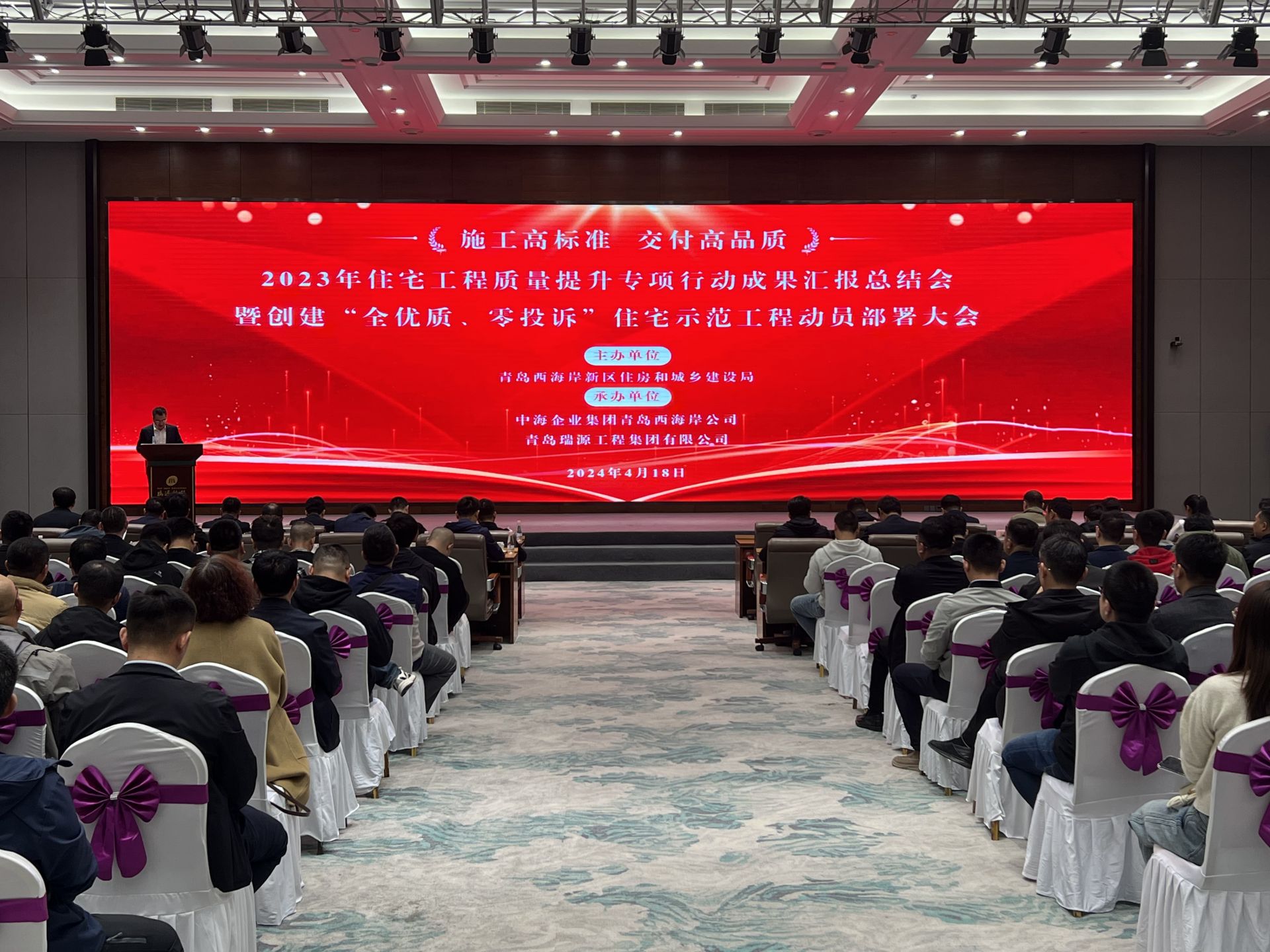 4月18日,青岛西海岸新区住房和城乡建设局召开2023年住宅工程质量提升专项行动成果汇报总结会暨创建“全优质、零投诉”住宅示范工程动员部署大会。区住宅工程质量提升专项行动工作领导小组成员,各功能区、泊里镇建设管理部门负责人以及新区部分建筑企业代表等200余人参加活动。