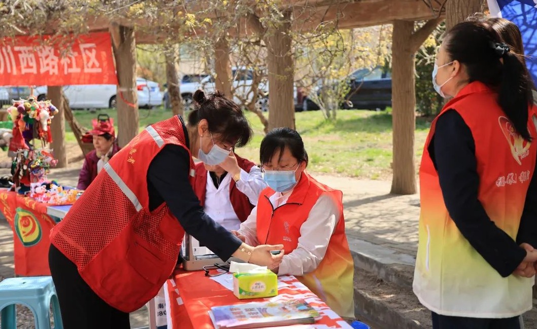 4月18日上午,金门路街道4S志愿服务直通车开进银川西路社区,在弘信山庄小广场开展志愿服务活动。