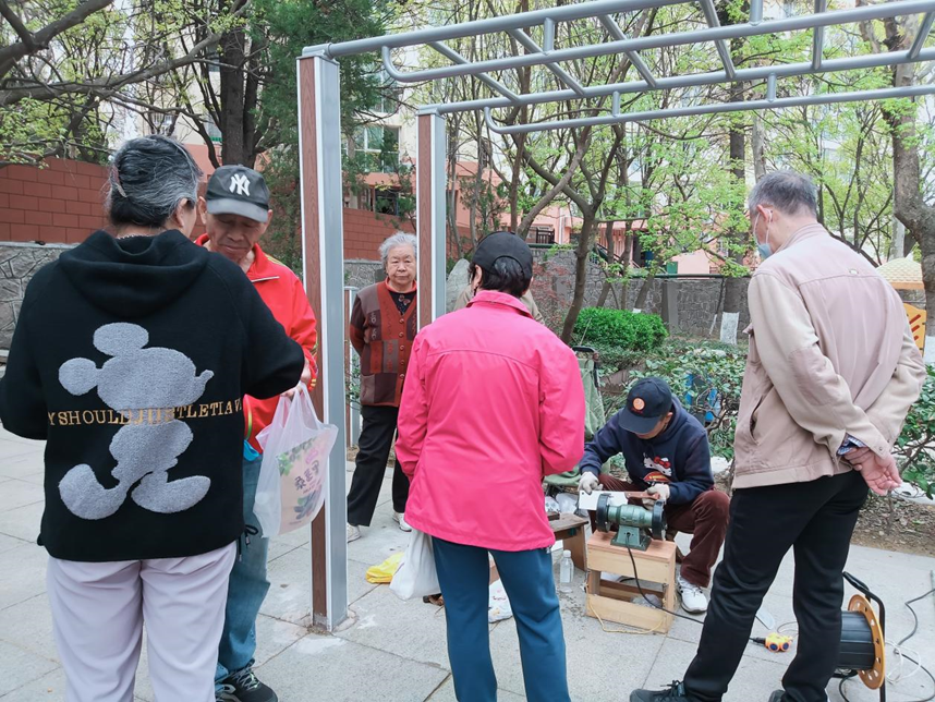 “你好,这把刀麻烦帮我磨一下”磨刀摊位的师傅埋头干活,来磨刀的居民络绎不绝。“现在买把新刀也不贵,但是磨刀是我们这辈人的传统,现在磨刀的越来越少了,今天见到这么专业的磨刀师傅挺开心的。”正在等待磨刀的张叔叔说道。