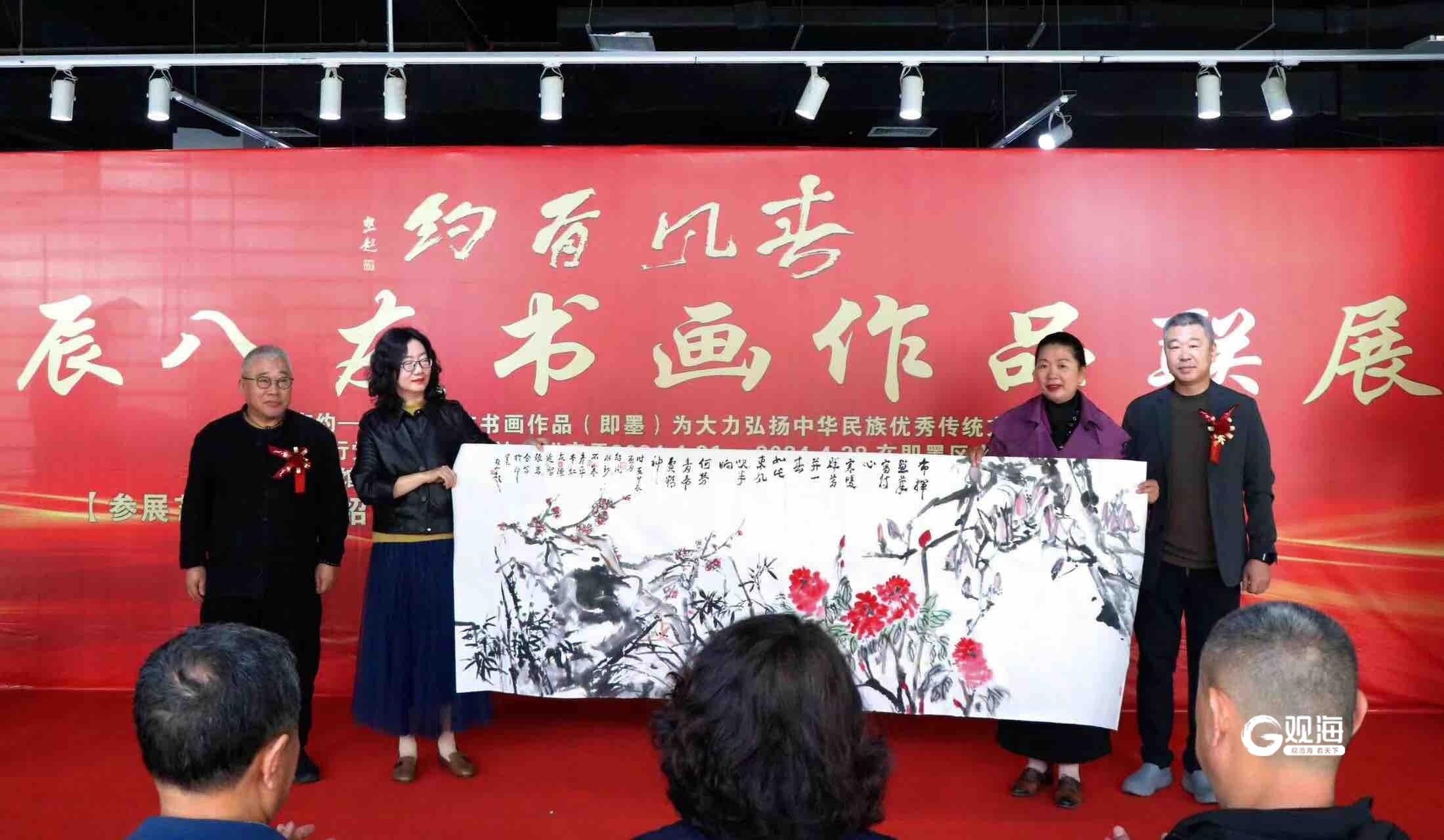 青岛日报社/观海新闻4月23日讯 4月21日, 由即墨区文化和旅游局、即墨区文学艺术界联合会主办,即墨区文化馆、即墨翰墨缘画廊、青岛聚隆斋画廊承办,青岛市收藏家协会、青岛辉煌酒业有限公司、墨城国际文化传媒、威海乳蚝渔业有限公司、华海书画艺术研究中心支持与协办的春风有约——甲辰八友书画作品联展在即墨区文化馆开幕,参展艺术家向即墨区文化馆捐赠了《春风有约》书画作品。