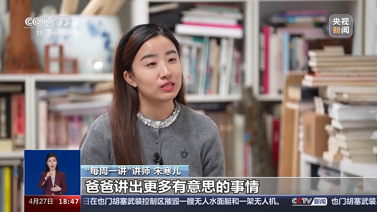 30年里,宋文京已在“每周一讲”授课80次,宋寒儿读大学前,几乎每次都陪着父亲一起,她还会在家里帮父亲查找图片、视频,制作幻灯片,担任“每周一讲”的非正式小助理,而“每周一讲”也在不知不觉间,像一颗种子一样种进了她的心里。
