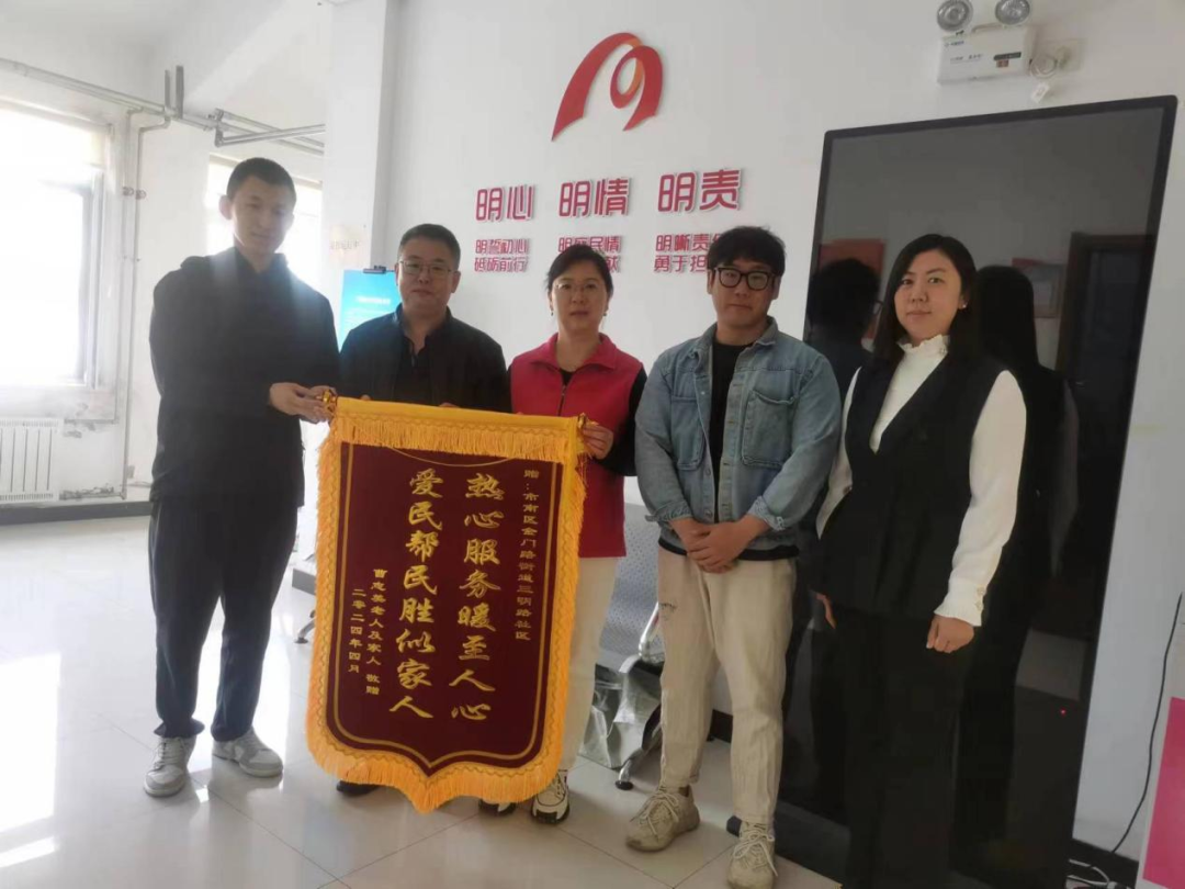 4月28日上午,三明路1号居民为三明路社区送来锦旗,感谢社区帮助家里老人清理了常年堆放的垃圾,并收拾了家里卫生,改善了老人居住环境。