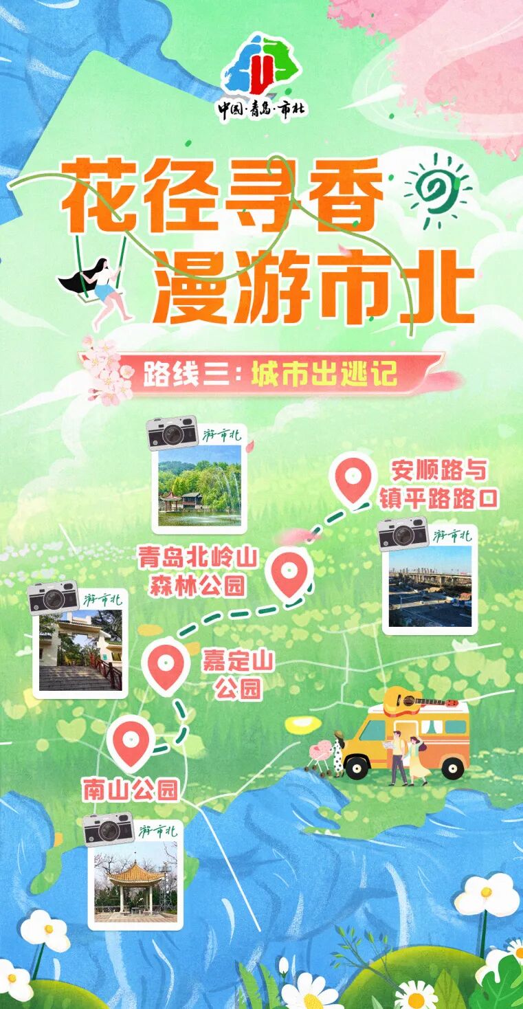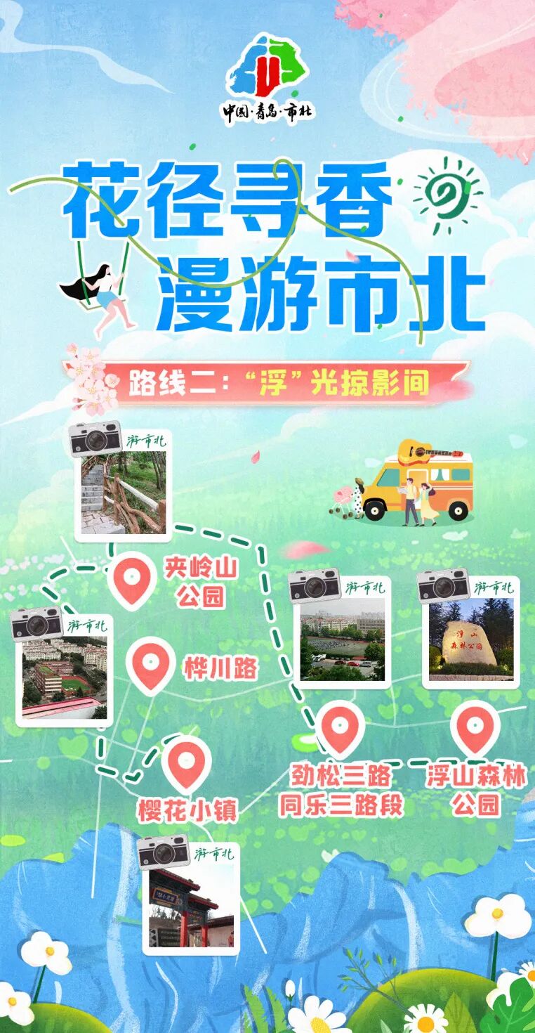 在这春意盎然的市北,我们不急不躁只愿与花同游,与春同行。让每一步都在诗中行,每一景都作画中游,体验一场真正的“花径寻香,漫游市北”。