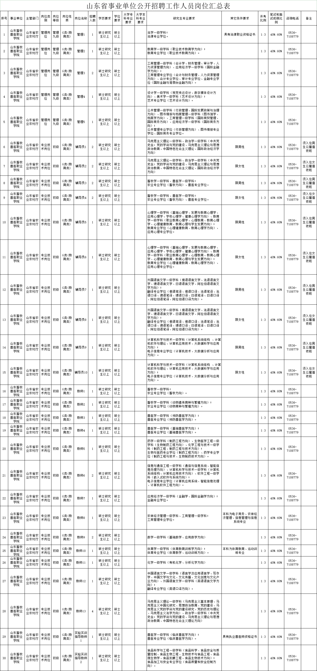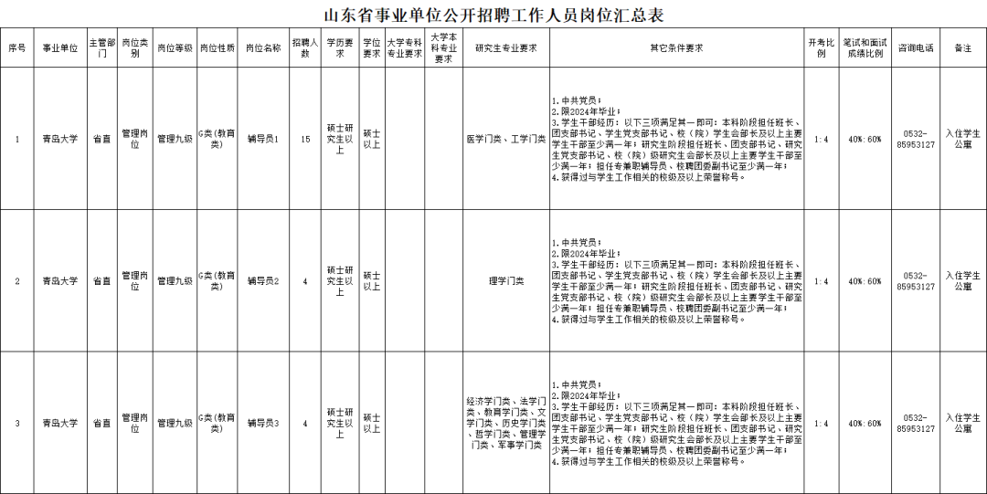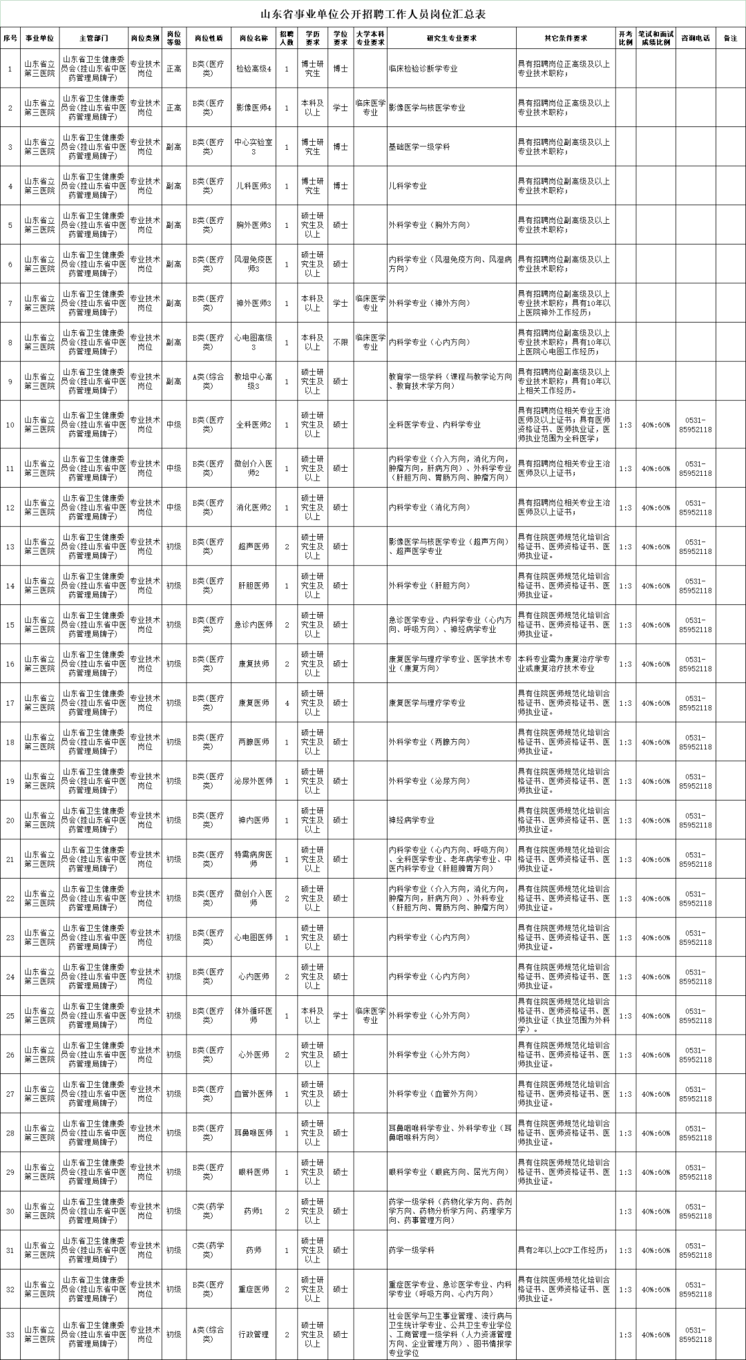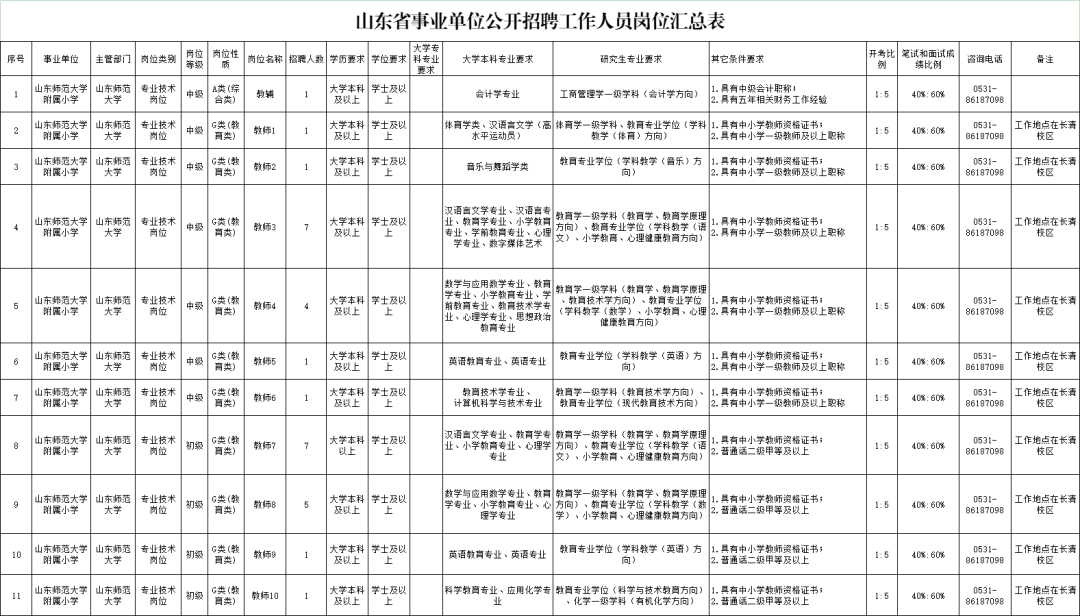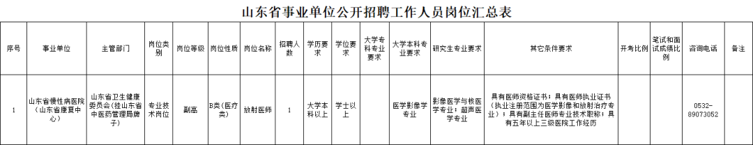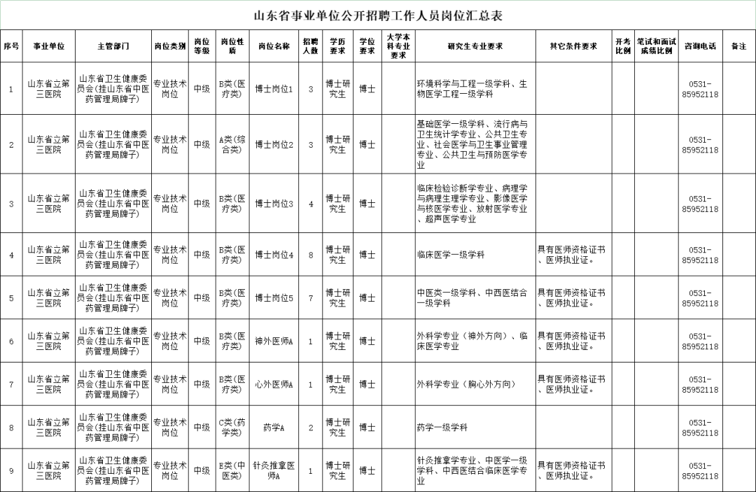 拟面向社会公开招聘中级专业技术岗位工作人员16名、初级专业技术岗位工作人员14名。具体岗位条件、招聘人数详见《山东省事业单位公开招聘工作人员岗位汇总表》。