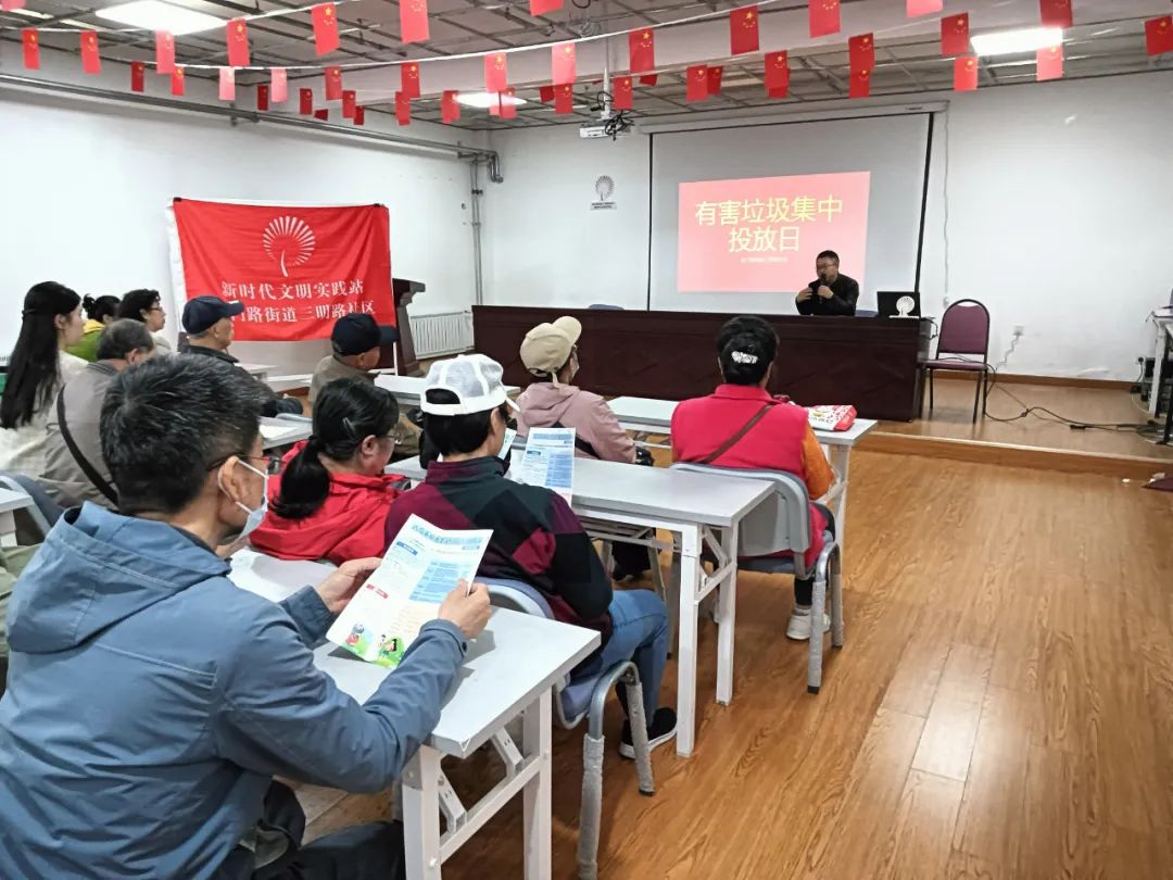 为进一步提升辖区居民对有害垃圾的了解,提高有害垃圾的收集力度,5月5日,金门路街道三明路社区在辖区开展“有害垃圾集中投放日”宣传活动。