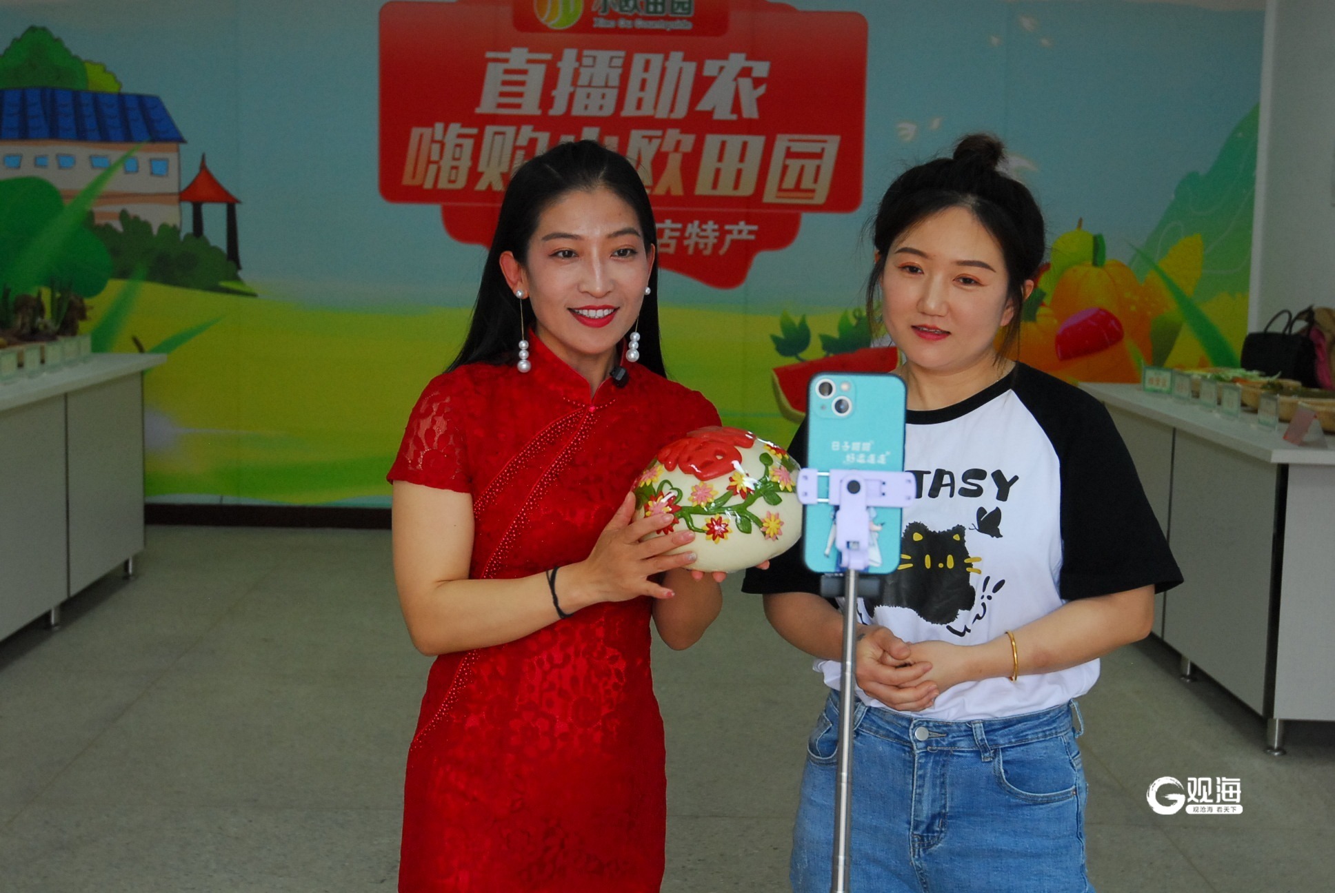 5月7日上午10点,直播准时开始,一时间,吸引了不少网友在线观看。直播间里,散养柴鸡蛋、西瓜、西红柿、馒头、甜瓜、翡翠黄瓜、鸭蛋、特色粽子等经过精心挑选的特色农产品摆了满满一桌,网络主播详细介绍各类农产品的特色和营养价值,引得网友们频频下单。