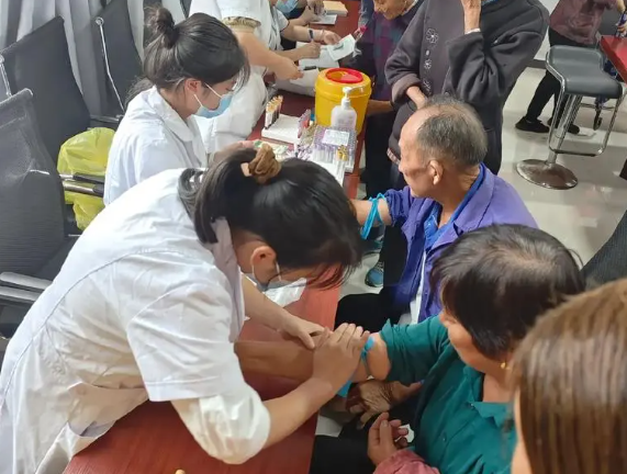 走进金门路街道惠康延年居家养老服务中心,工作人员正在为辖区内符合条件的老人们进行免费查体服务。惠康延年居家养老服务中心是一家在金门路街道扶持、统筹下建立的集居家上门护理、日间照料、长短期照护、康复活动、养老食堂等服务为一体的社区嵌入式养老服务机构,着力让辖区老年人在家门口就能享受到多层次、高品质、专业化的养老服务。