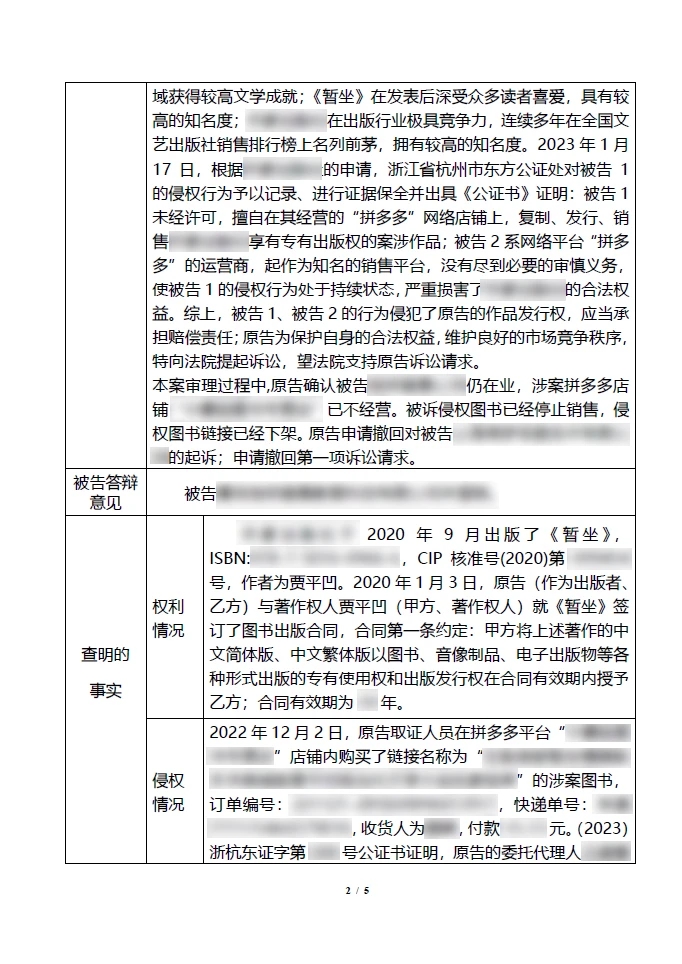 在判决书中,将诉讼请求、答辩意见、知识产权要素事实、裁判理由、法律依据、裁判主文、权利告知等内容以表格形式呈现,在确保审判要素完整的条件下,对事实要素提取归纳,明确案件焦点,为裁判文书"瘦身",让当事人快速、直观地读懂判决书。