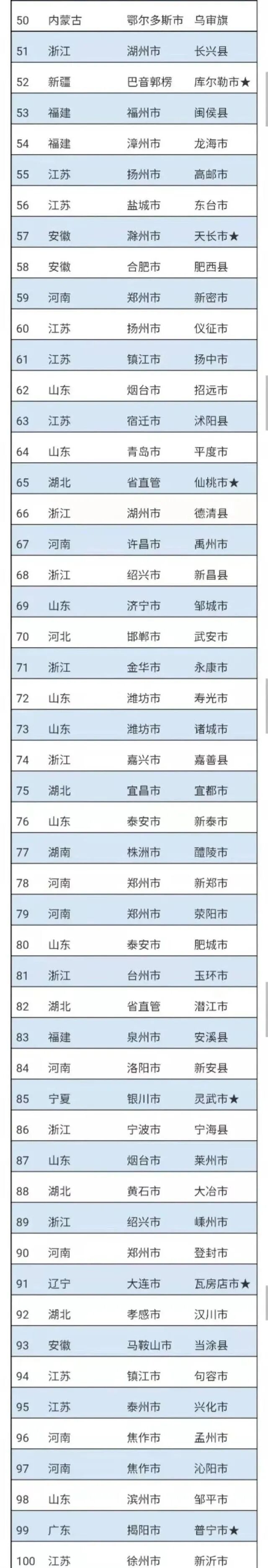 需要注意的是,行政区划调整和设置是影响强县分布的一个重要因素。比如,此前青岛在榜单中排名最靠前的县市即墨,由于撤县设区退出榜单。