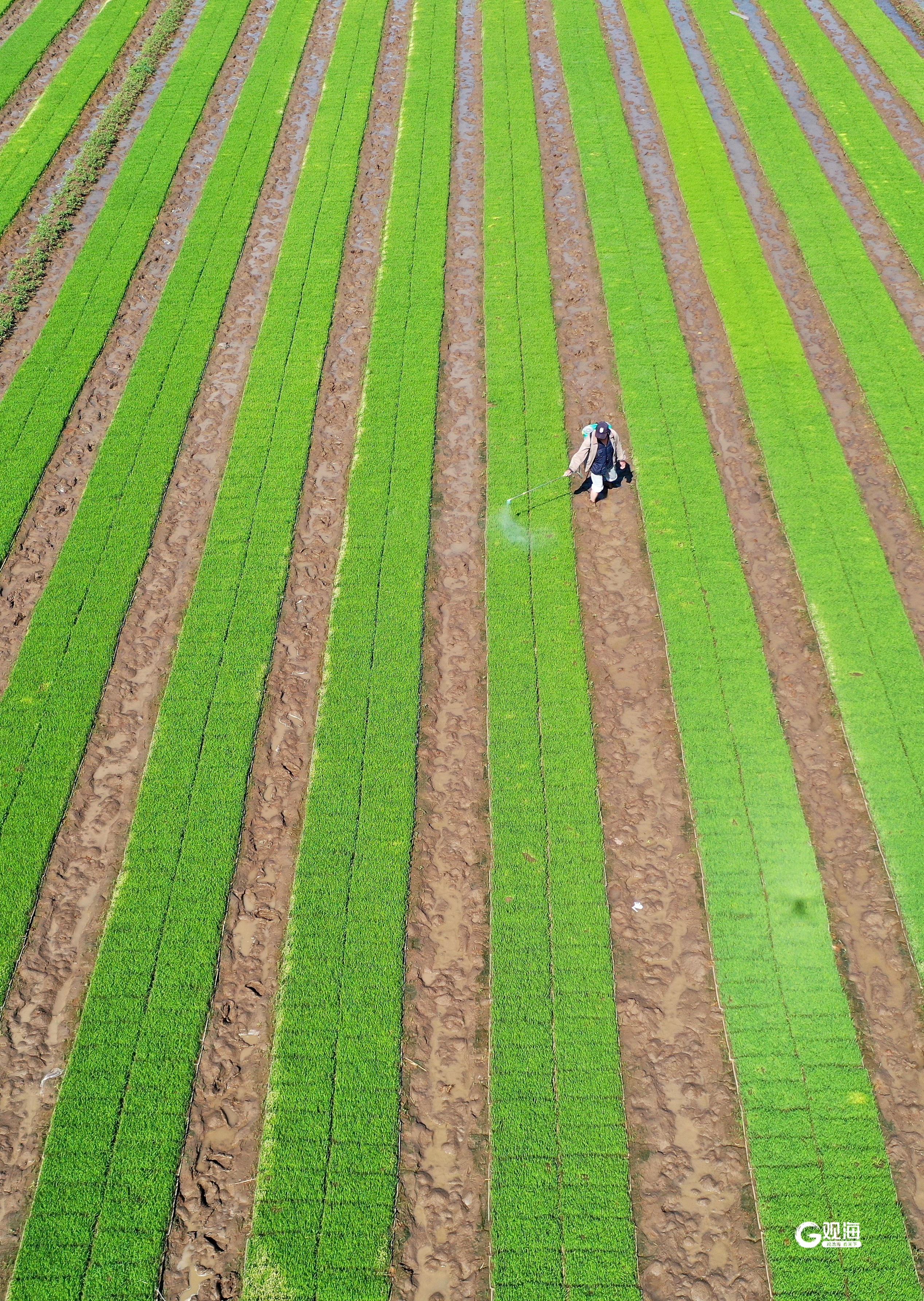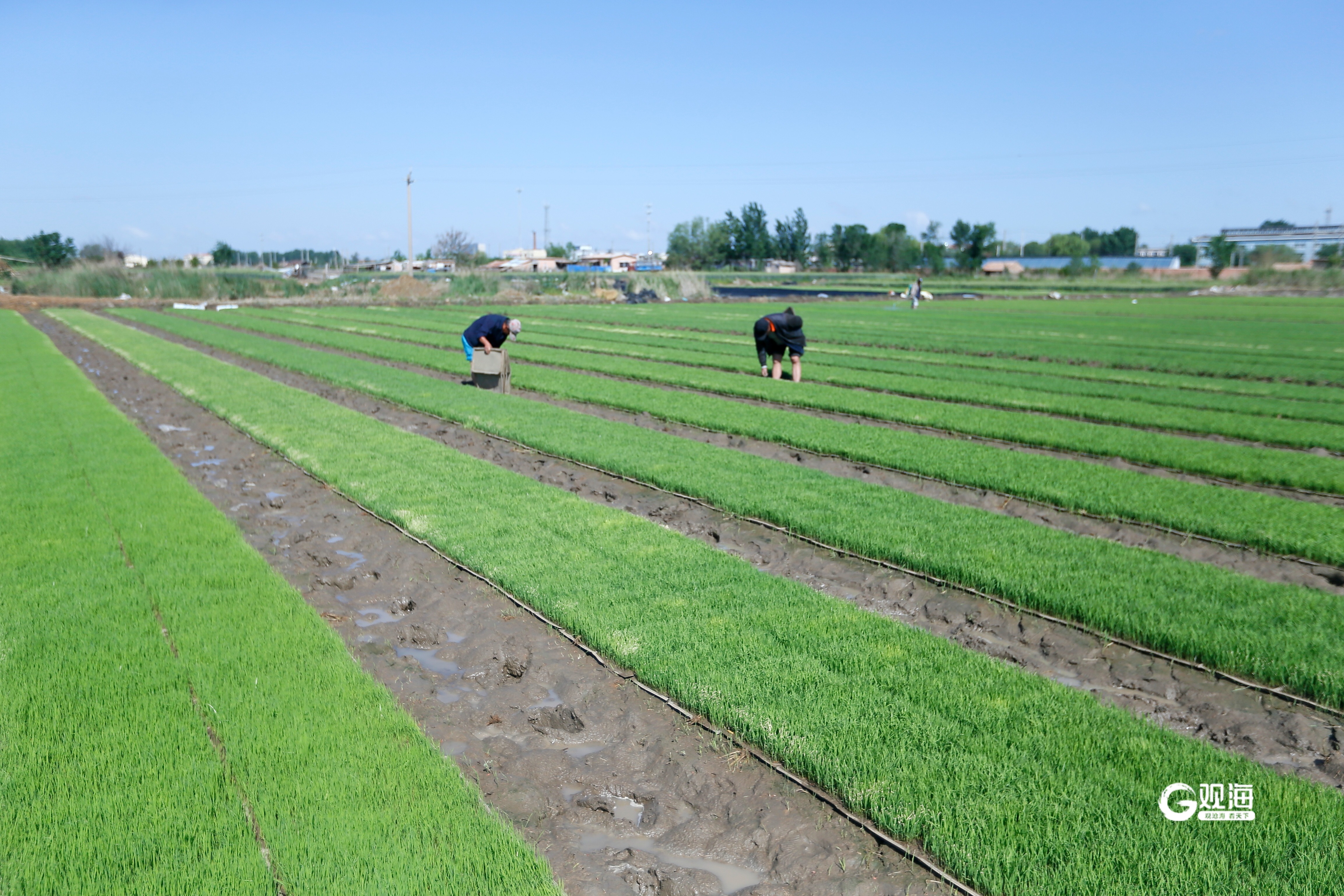 青岛日报社/观海新闻5月16日讯 初夏时节,即墨区蓝村街道的农民抢抓农时,进行水稻秧苗除草、施肥、病虫害防治等管护工作,确保秧苗长势良好,为水稻丰产丰收打下良好基础。图为蓝村街道青香水稻种植专业合作社的农民在育秧基地管护秧苗。