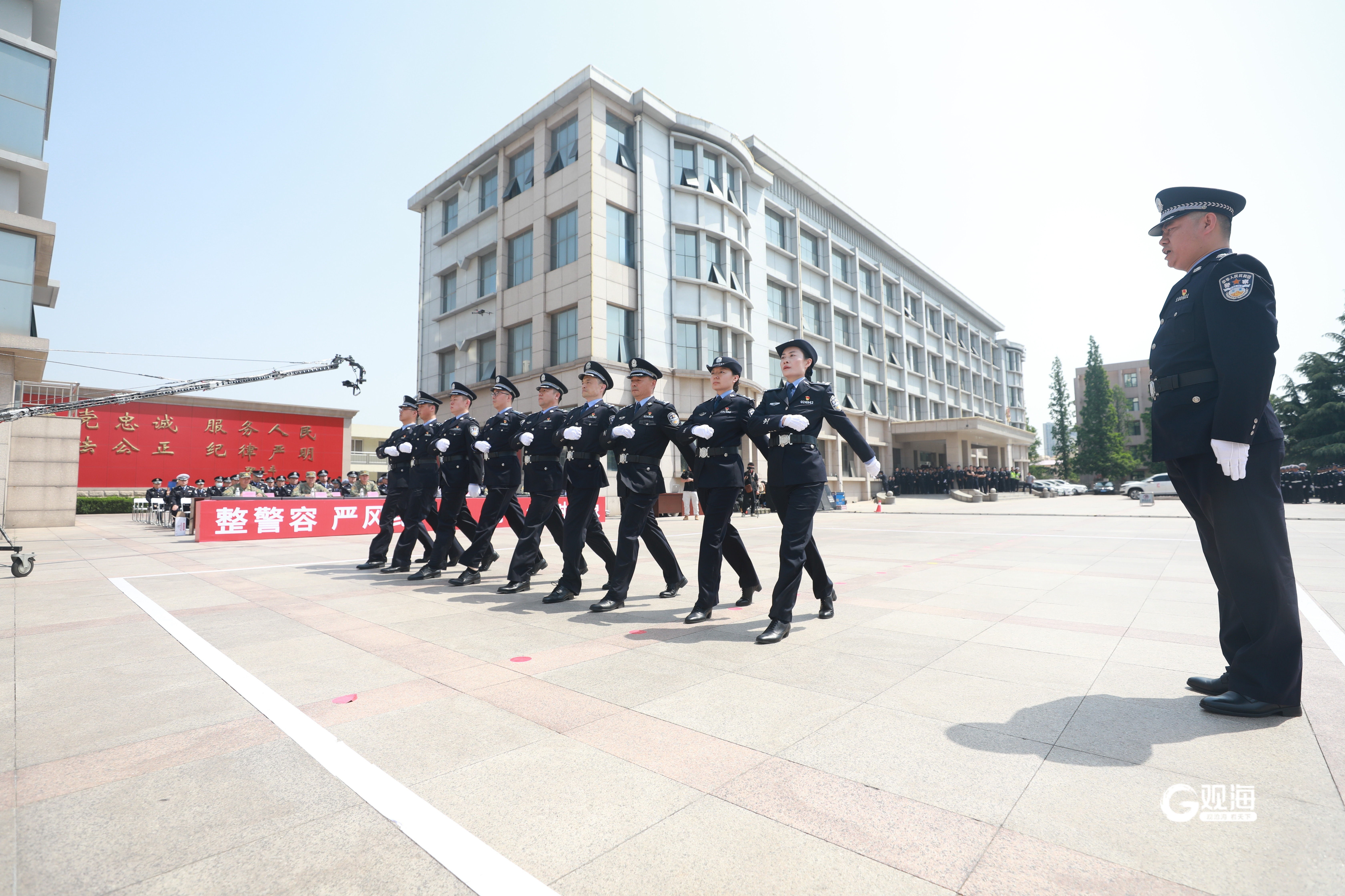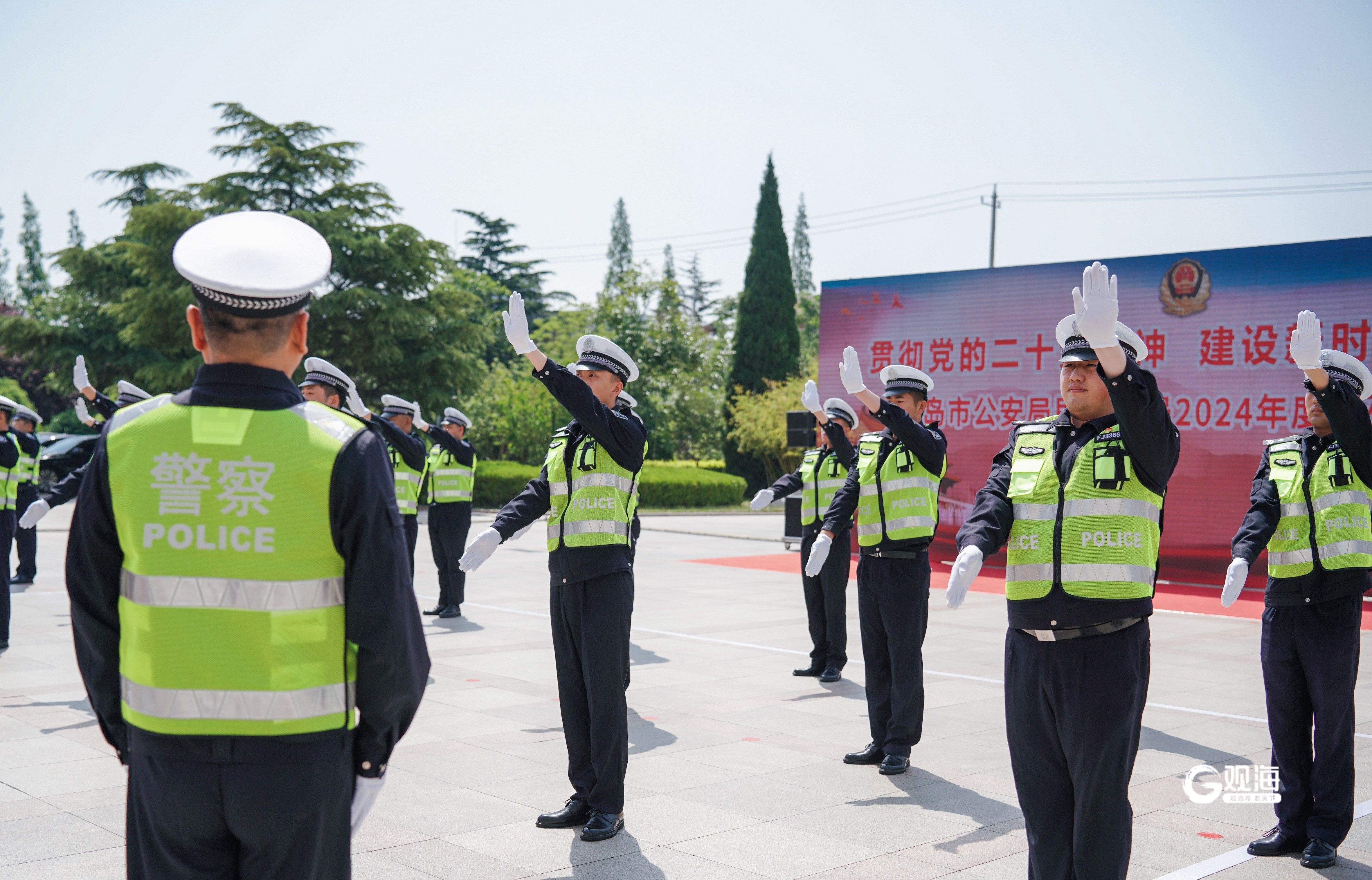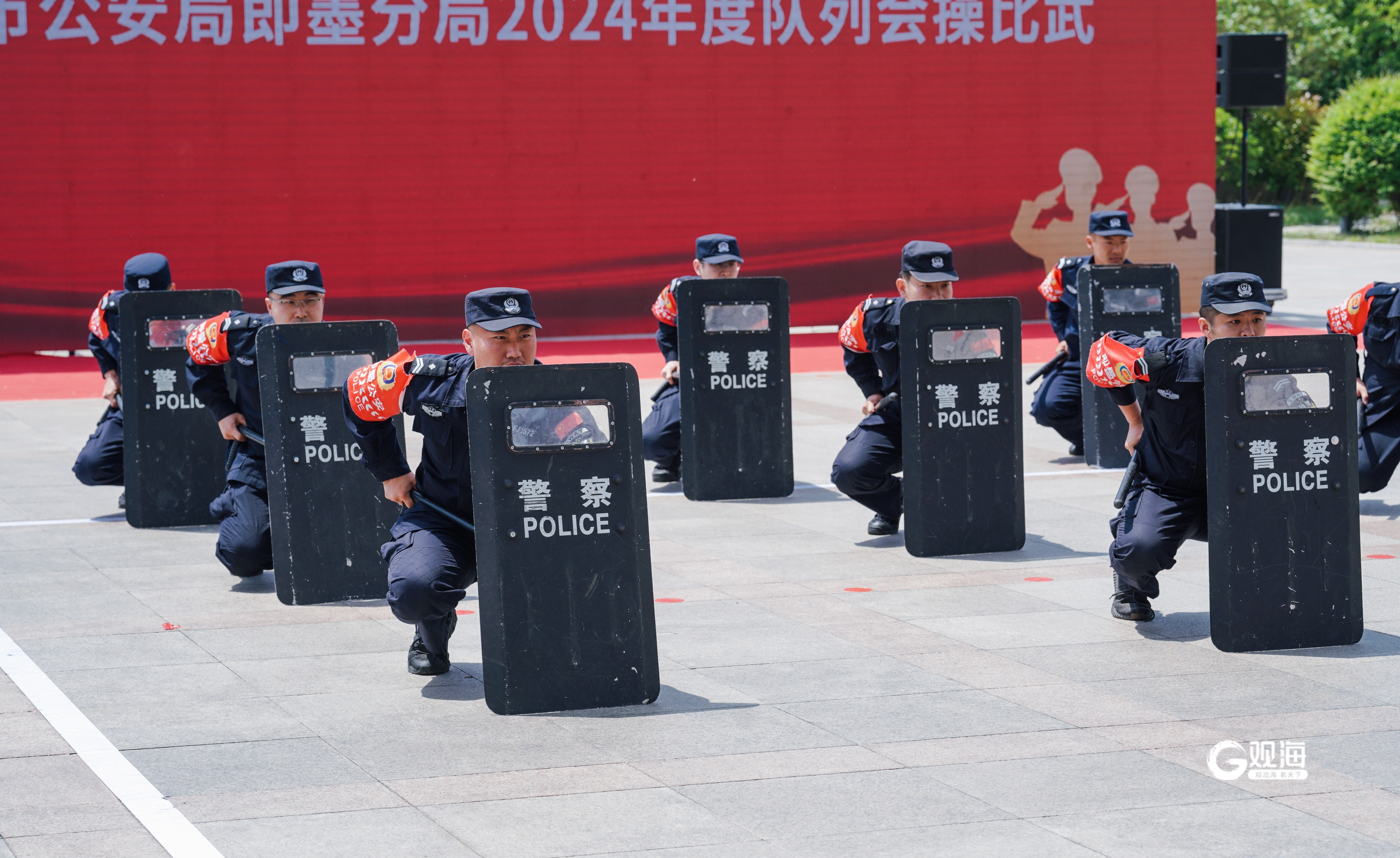 青岛日报社/观海新闻5月19日讯 5月17日上午,青岛市公安局即墨分局举行2024年度全区公安机关队列会操比武。上午9时30分,随着现场指挥员下达“开始”口令,12支参赛队伍按抽签顺序登场,依次演示立正稍息跨立、停止间转法、行进与停止、敬礼与礼毕等比武科目。