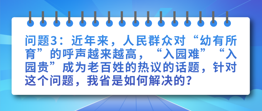 邓云锋:在刚才的发布词中,我简单谈到了我省学前教育事业发展的情况。民之所盼,政之所向。解决好群众的教育方面的操心事、烦心事、揪心事,是办好人民满意教育的必然要求。