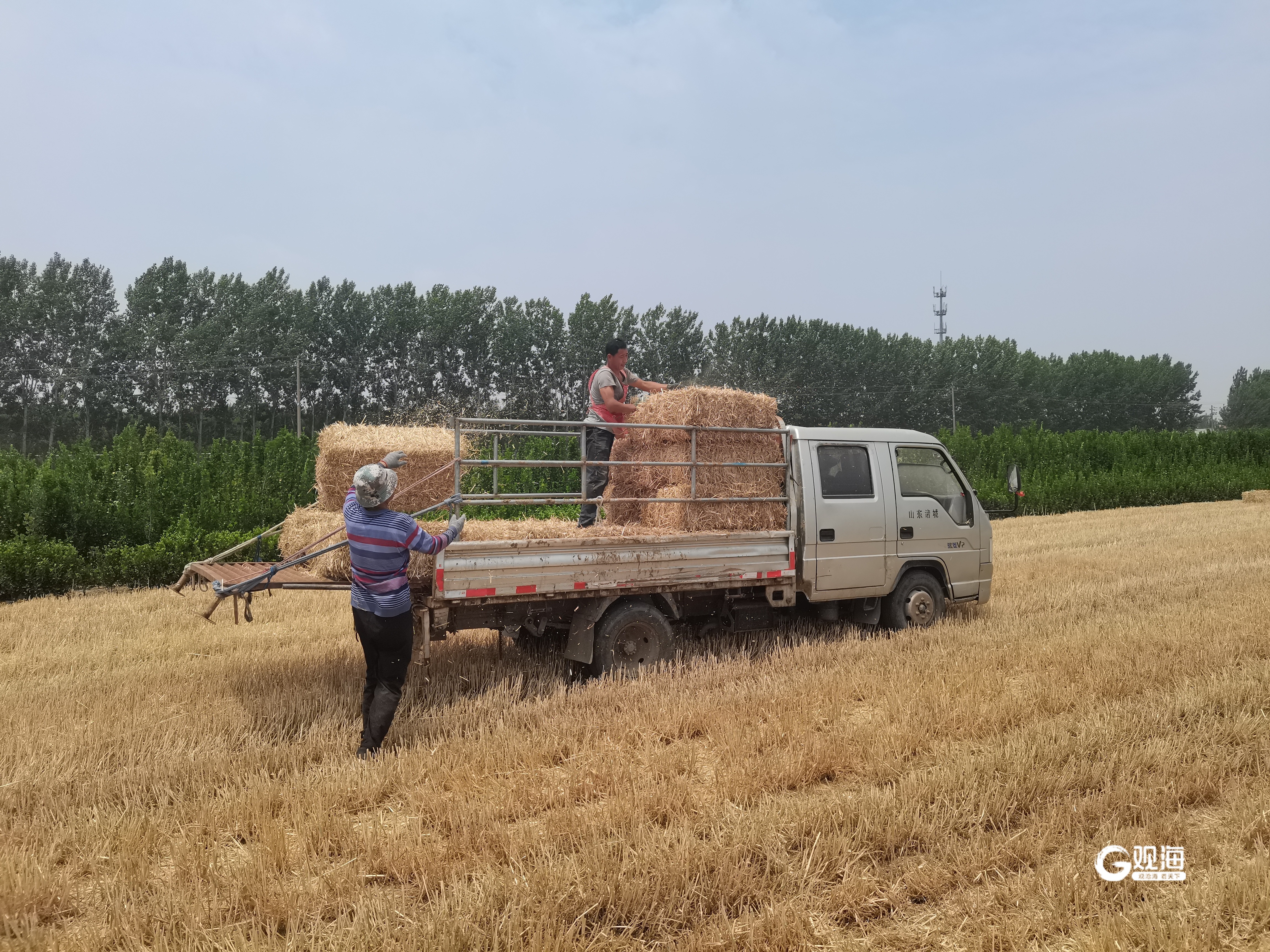 现场正在收购秸秆的工作人员介绍,压包好的干秸秆一般直接运往附近的养殖场,和其余草料配比混合,进行再加工,处理后不仅营养价值更丰富,还能存放一到两年的时间,在市场上很受欢迎。