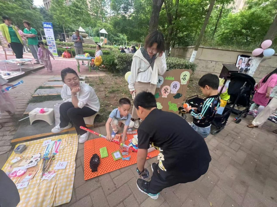 6月14日,金门路街道银川西路社区与市南区春天幼儿园联合举办了一场以“萌娃当家,童趣闹市”为主题的儿童跳蚤市场活动。活动在银海一号居民小区广场举行,吸引了众多辖区居民和志愿者的参与,现场气氛十分热烈。