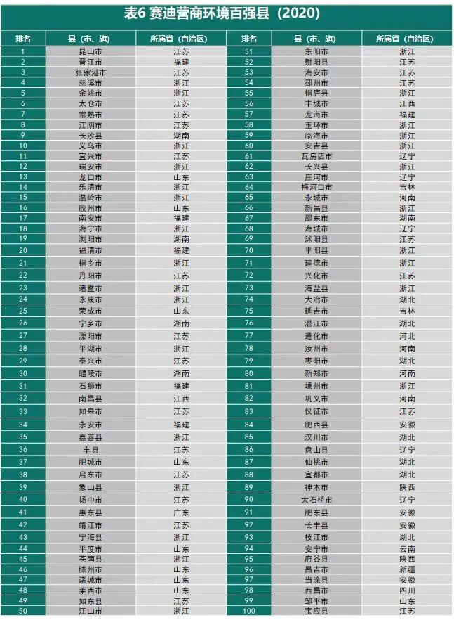 浙江、江苏两省保持领先。浙江省表现尤其突出,2020年营商环境百强县总数达到27个,比2019年增加3个。江苏有22个县市进入营商百强县,比2019年增加2个。山东2020年有9个县(市)进入营商环境百强县。
