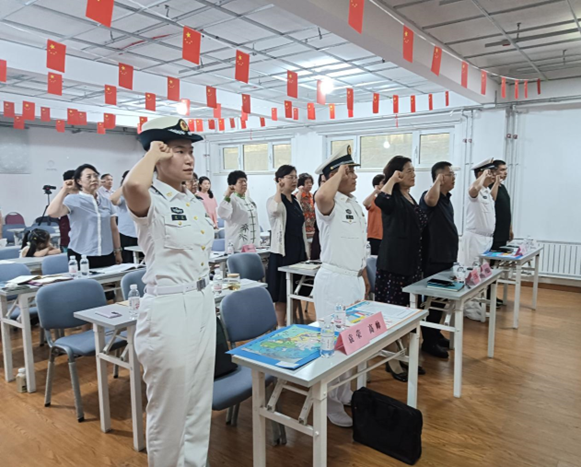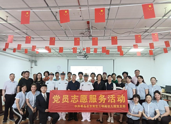 金门路街道三明路社区联合共建单位三明路幼儿园党支部、海军某舰官兵,开展“庆‘七一’把对党忠诚落实到履职尽责的实践中”党课宣讲。