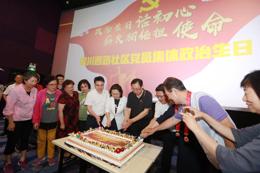 活动开始,银川西路社区党委书记连俊鹏发表致辞并带领全体党员重温入党誓词,让入党誓词入脑入心;接下来社区党委书记助理、区委组织部挂职干部张晓宇组织在场党员齐唱《没有共产党就没有新中国》等红歌,激发了党员们的爱党爱国情怀;随后,青岛市环境卫生发展中心党委委员杜斌、金门路街道办事处党工委书记郭平、办事处主任张青磊为优秀老党员颁发光荣在党五十年纪念章、岛城先锋“党员中心户”纪念牌和鲜花,以此增强党员的荣誉感、归属感、使命感;现场开展了集体过“政治生日”活动,为广大党员送上精心制作的“政治生日”蛋糕,让大家感受到了来自党组织的温暖关怀,同时观看了红色电影,广大党员干部群众备受鼓舞,纷纷表示要珍惜现在来之不易的幸福生活。