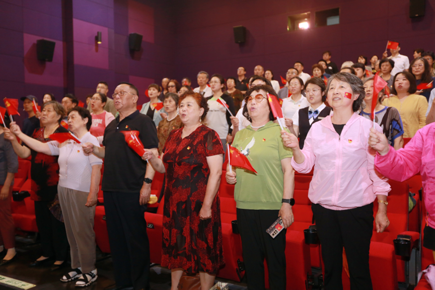 6月26日下午,青岛市市南区金门路街道银川西路社区“党徽闪耀打头阵 建功奋进当先锋”庆“七一”主题党日活动在青岛大商影城隆重举行。