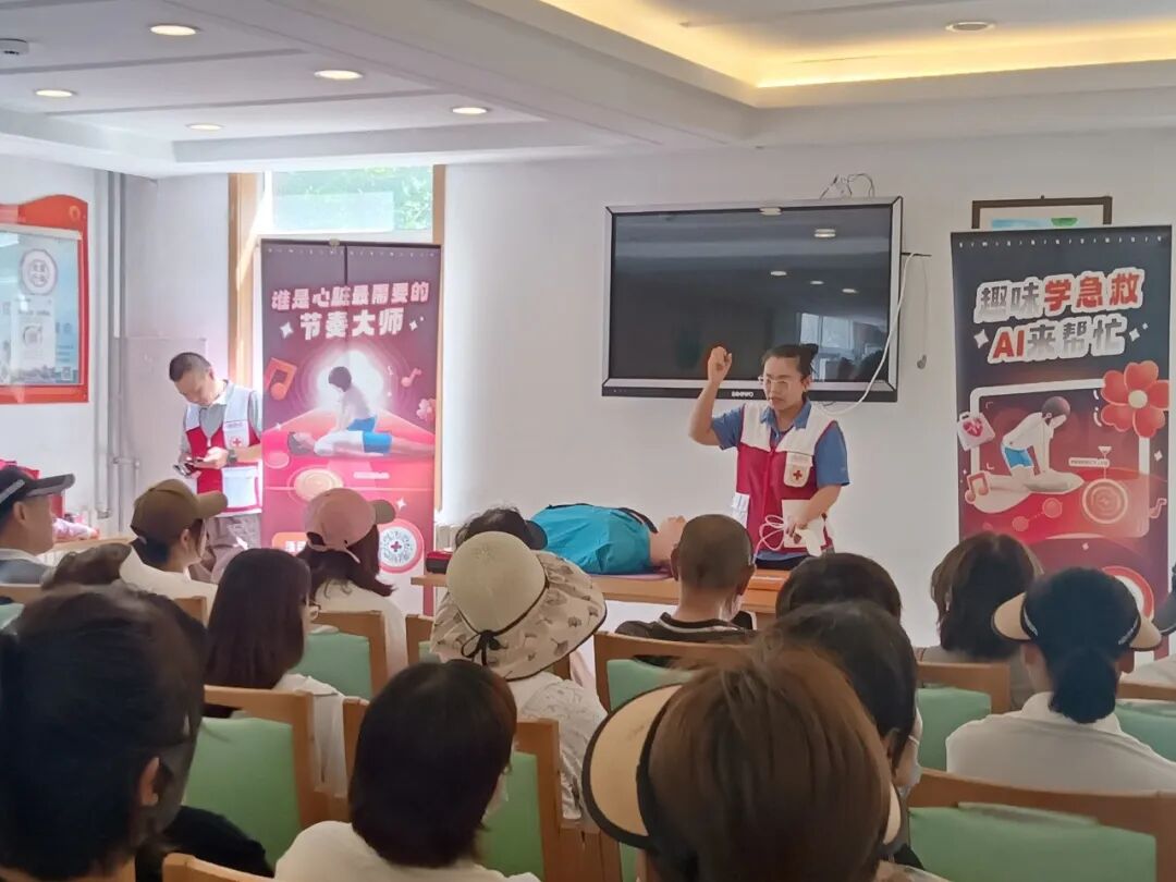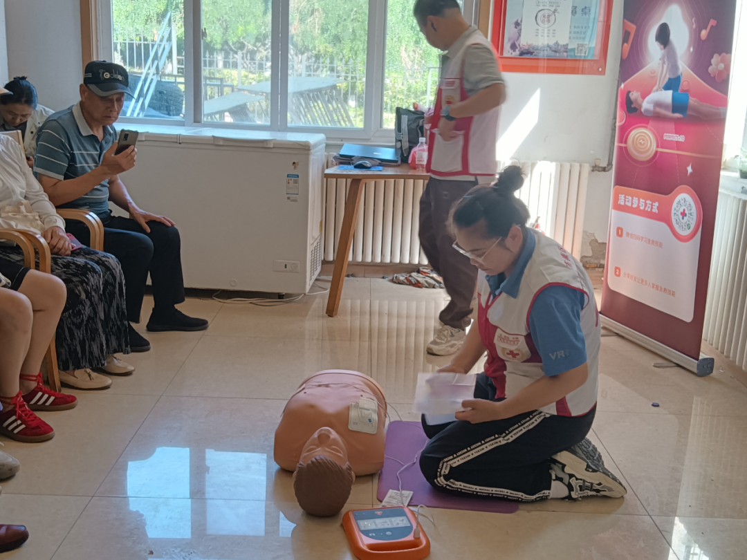 培训中,红十字会的专业讲师采用理论与实际操作相结合的形式,向大家详细讲解心肺复苏技能,自动体外除颤仪(AED)使用、气道异物梗阻等常见急症现场处理。在提问环节,大家纷纷提出在实际操作中的困惑,老师为参加培训的居民进行演示模拟和解答。在实操环节,通过模拟演练,让居民亲身体验急救操作,确保每位参与者都能在紧急情况下迅速、有效地进行自救和互救。