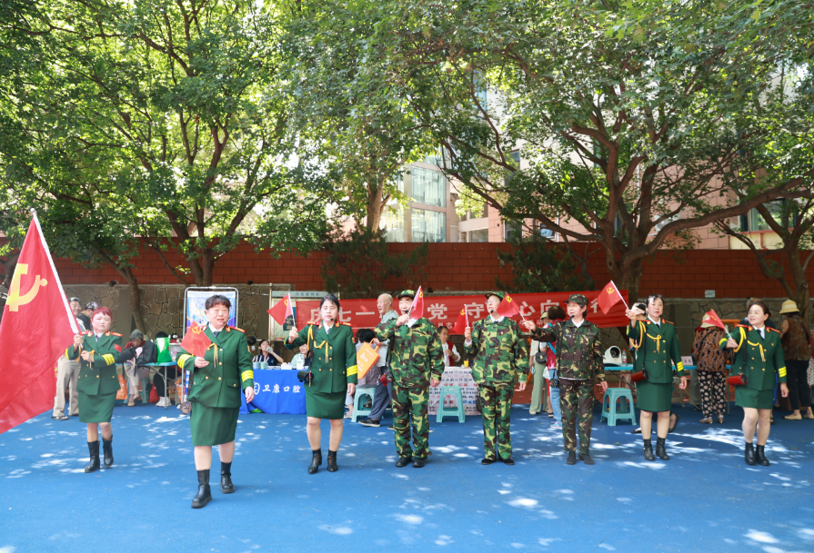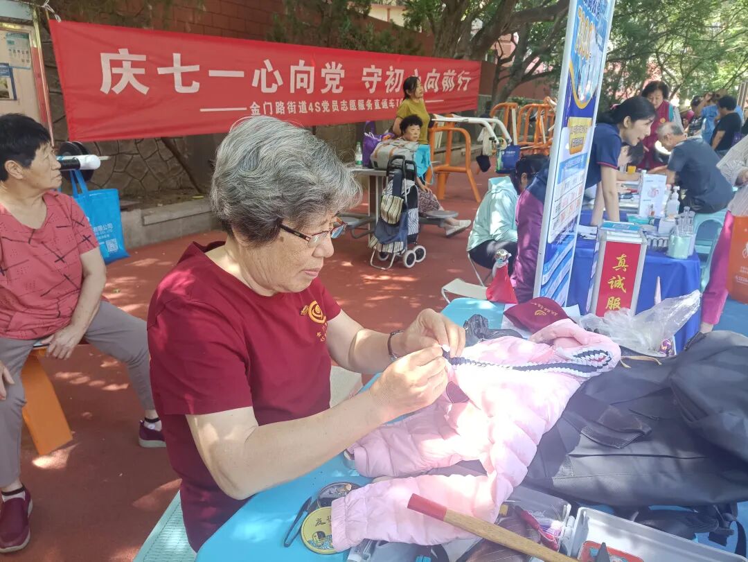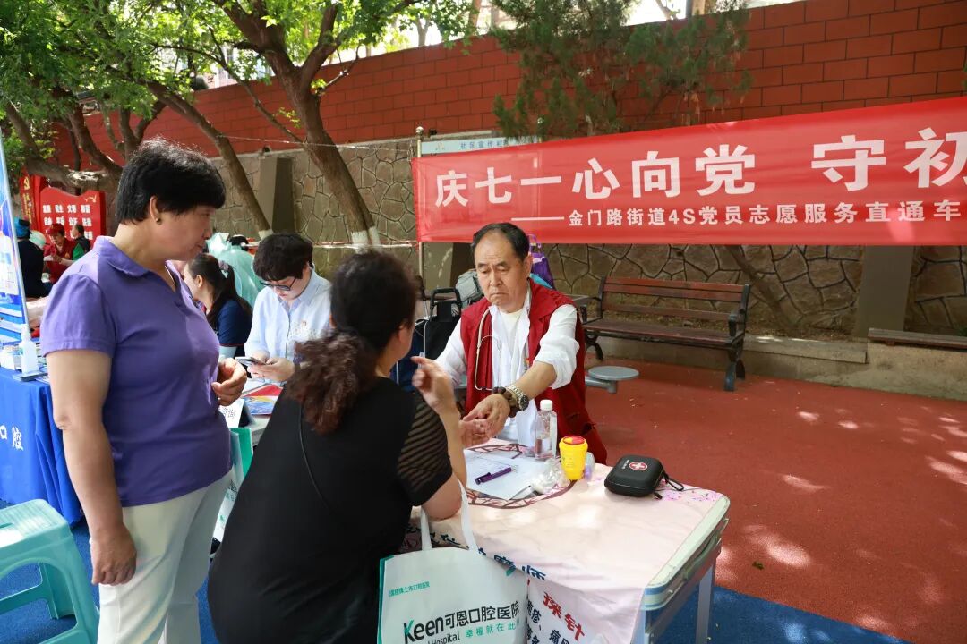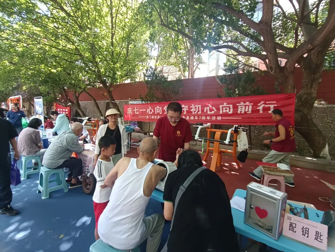 6月27日上午,金门路街道三明路社区小广场上,一场以“庆七一心向党,守初心向前行”为主题的4s党员志愿服务直通车七周年活动正在如火如荼地开展。活动不仅得到了三明路社区领导的大力支持,更凝聚了4s志愿者们的汗水和热情。