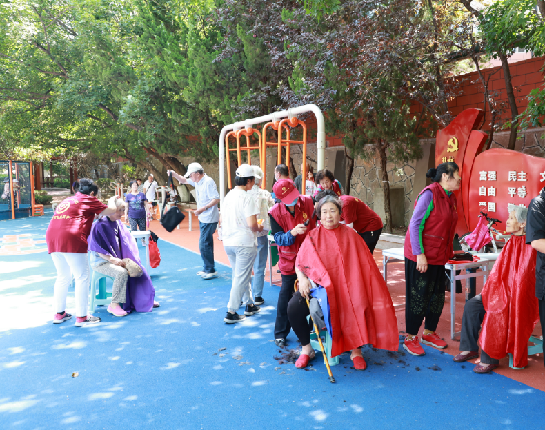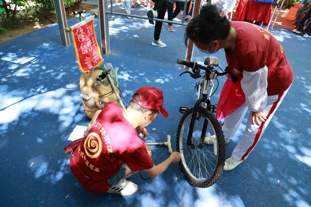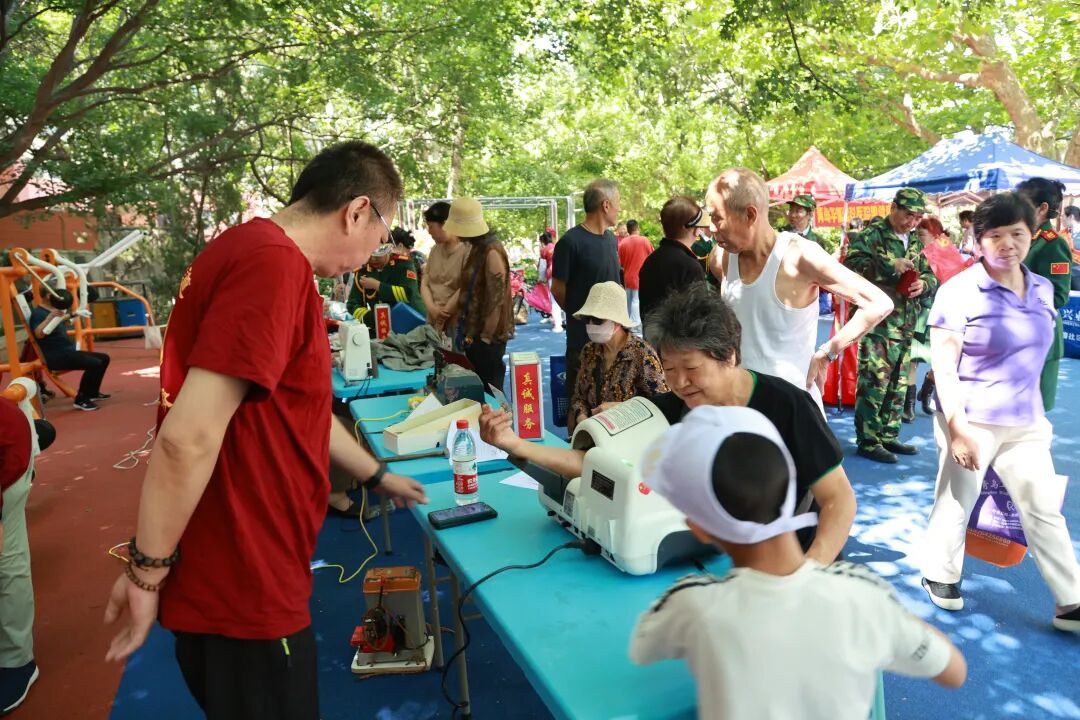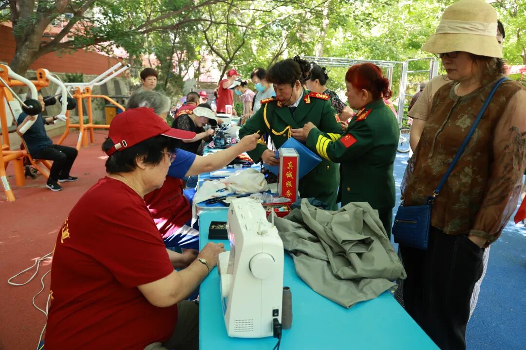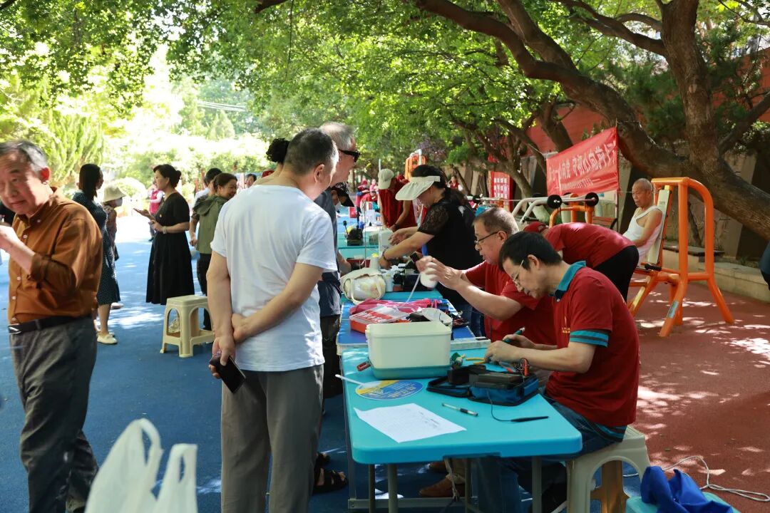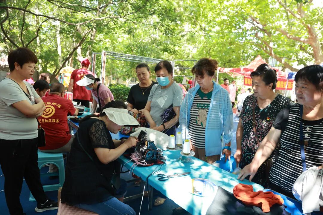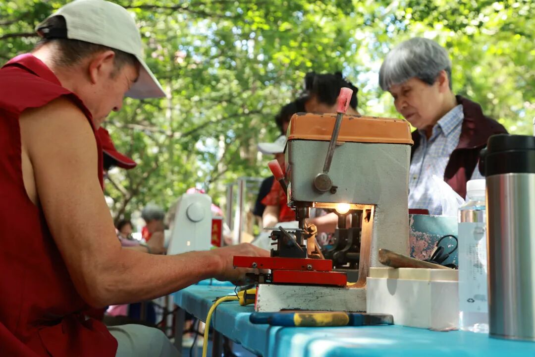 活动现场,服务项目有:义务理发、推拿、中医切脉、测血压、测血糖、缝纫扒边、修包修拉链、修自行车、修小家电、配钥匙、眼科检查、口腔检查、医养咨询、法律咨询、心理咨询、义卖等等,每一项服务的志愿者都凝心聚力对待手中的工作,他们用实际行动践行着党员的初心和使命。