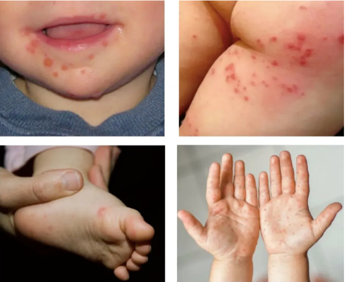 手足口病顾名思义,主要的皮疹可以出现在手足,还有口腔,另外还有一些孩子在肛周,也会出现皮疹,相对来说会更广泛。