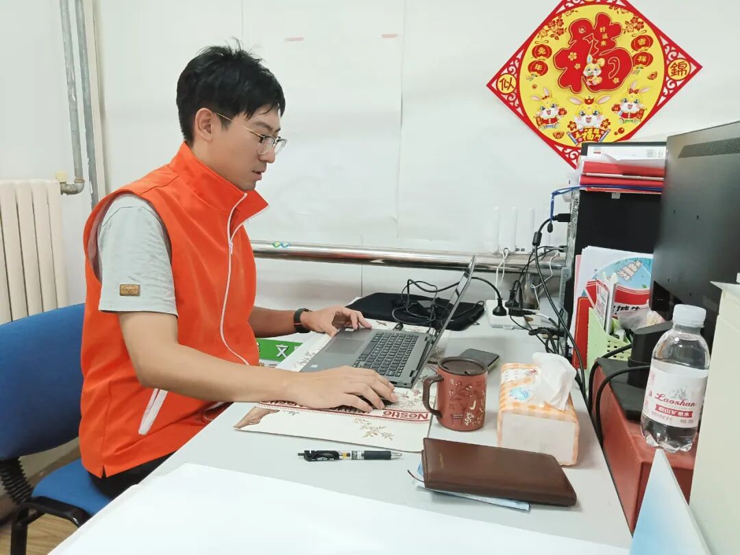 社区003网格长蒲阳,加班加点进行流动人口台账的录入工作。