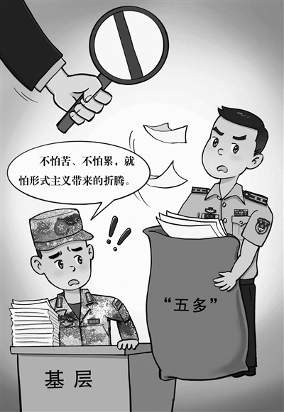 到基层部队调研,有官兵直言:“我们不怕苦、不怕累,就怕形式主义带来的折腾。”很多形式主义问题,不仅占用官兵大量时间,更空耗许多精力心力。这种现象值得反思,必须纠治。