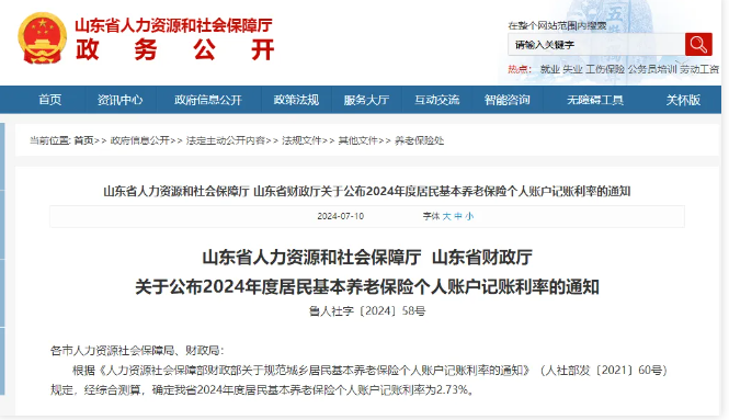 我省2024年度居民基本养老保险个人账户记账利率为2.73%