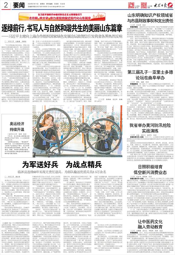“中方希望通过本次论坛,同各方加强绿色发展领域交流合作,助力各国经济社会可持续发展,促进人与自然和谐共生。”7月8日,国家主席习近平向上海合作组织国家绿色发展论坛致贺信,引发全省各界热烈反响。大家纷纷表示,将以总书记重要指示精神为指引,牢固树立和践行绿水青山就是金山银山的理念,坚定走好绿色低碳高质量发展之路,深化与上合组织国家地方间绿色合作,努力书写人与自然和谐共生的美丽山东篇章。