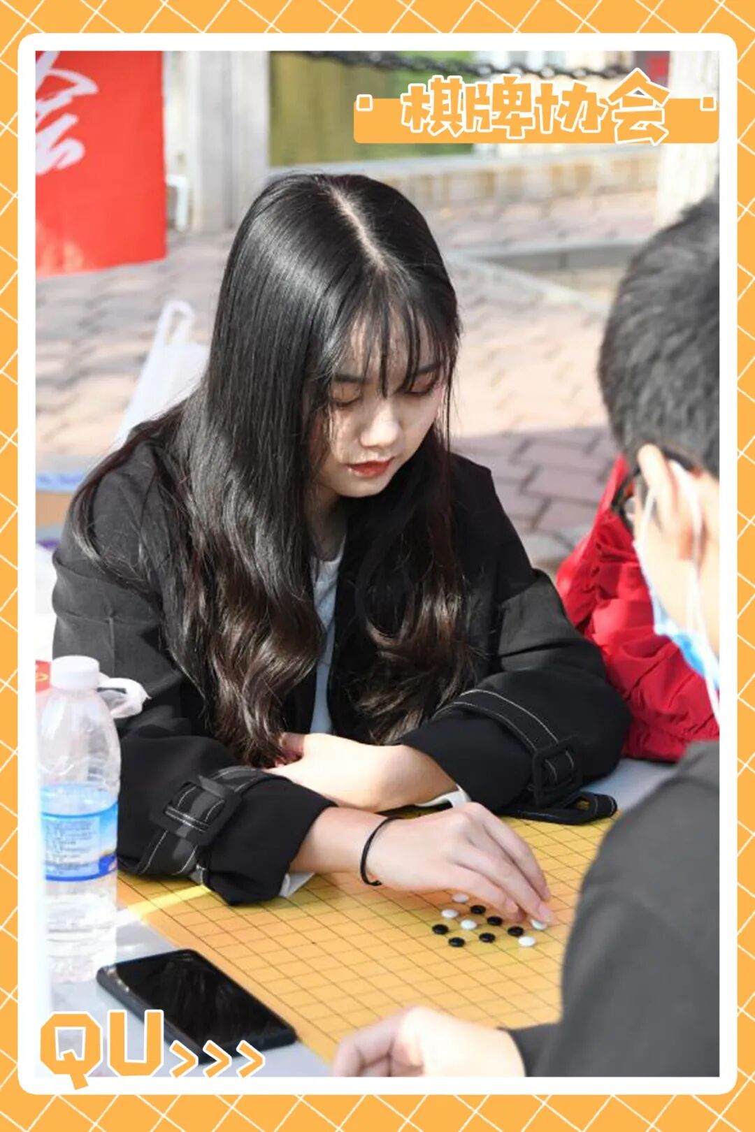 “我们是刚成立的社团,主要活动是剧本杀、各种桌游还有TRPG跑团,现在大家正在这边玩三国杀还有UNO牌,我们还准备了紧张刺激的《骆驼大赛》和硬核卡牌《丧尸之旅》等等,大家不会玩也没有关系,我们有人形自走教学机器人,可以手把手教你。我们的宗旨是高效有趣的社交娱乐,欢迎大家来玩。”