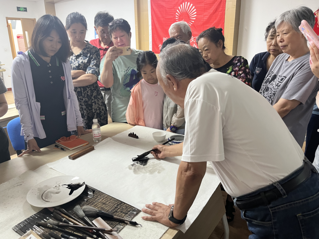 课堂上,孙光耀老师循序渐进地讲解了中国画的学习要点,亲身为学员们示范作画,层层递进剖析写意花鸟画的重点,学员们积极参与,热情高涨,在浓浓墨香之下感受传统文化的魅力。