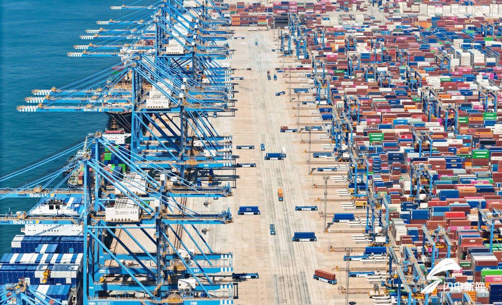 山东港口青岛港全自动化码头 图源:闪电新闻