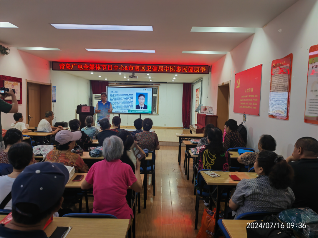 为普及中医文化、养生知识,提高居民自我保健意识,7月16日,金门路街道仙游路社区与青岛广电全媒体节目中心、市南区卫健局组织居民开展了中医惠民健康季讲座活动。