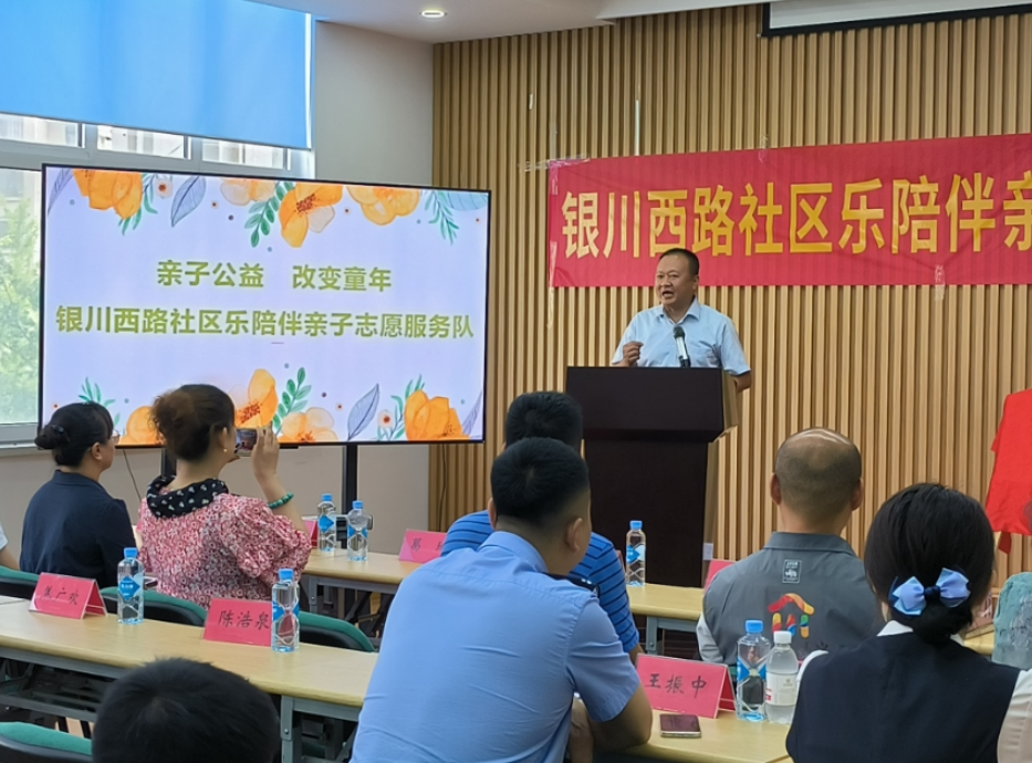 首先,银川西路社区党委书记连俊鹏发表了致辞,表示乐陪伴亲子志愿服务队伍的成立,既是落实立德树人的基本工作,也是推动社会主义核心价值观融入日常生活的生动实践。通过志愿服务,不仅能增强青少年的社会责任感和集体荣誉感,还能促进社区的凝聚力和文明程度的提升。