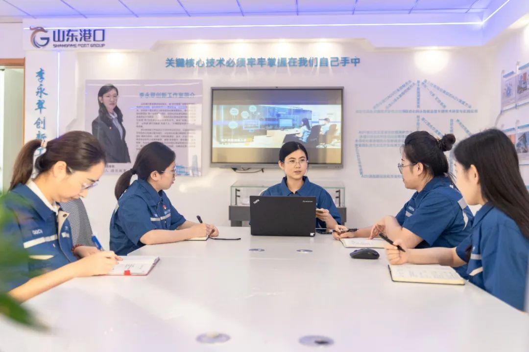 山东港口青岛港自动化码头信息技术部的巾帼团队正在讨论系统测试方案。