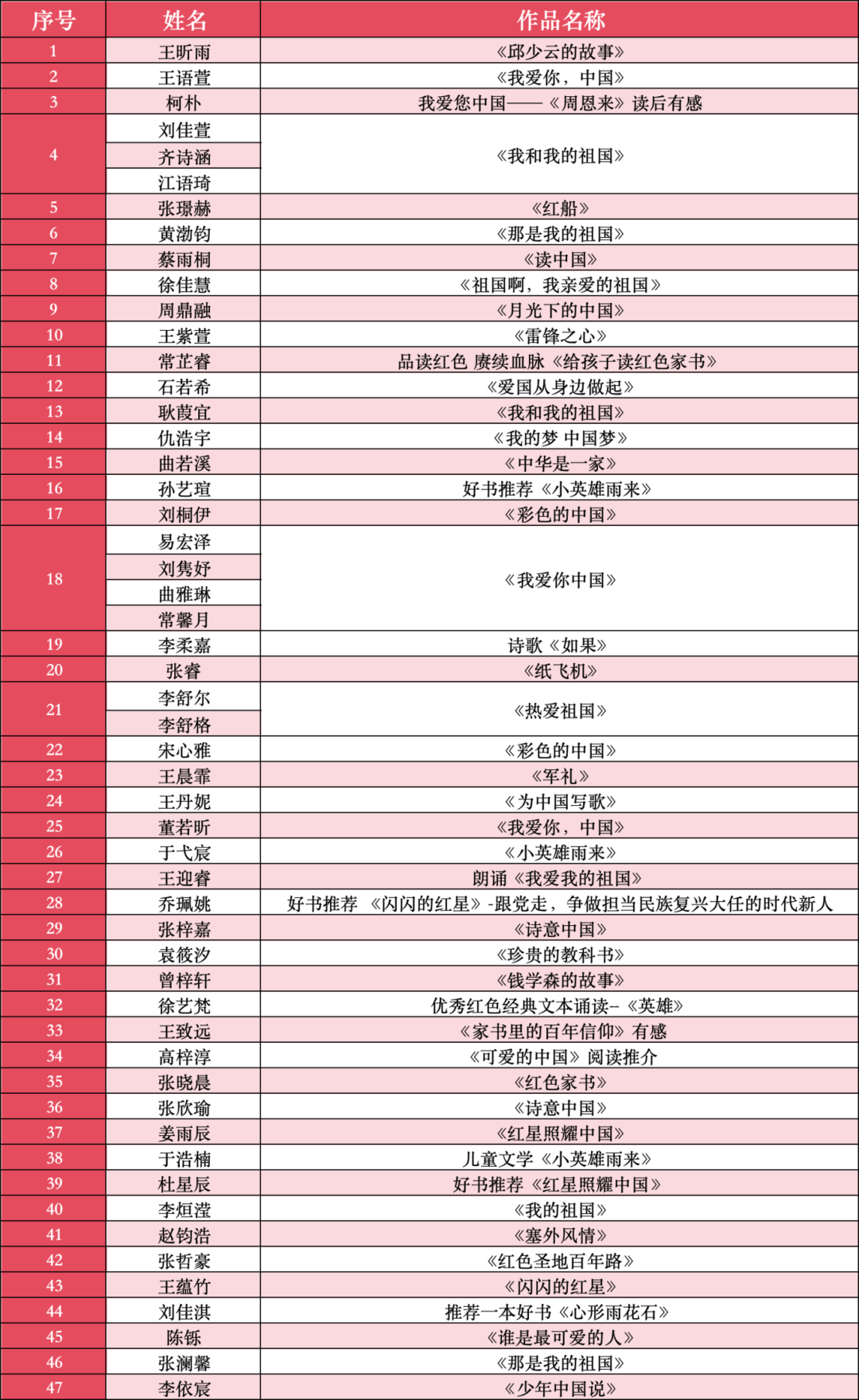 二、参与“我爱您中国·最美读书声”朗诵大赛活动,获得积分(1分)名单(排名不分先后):