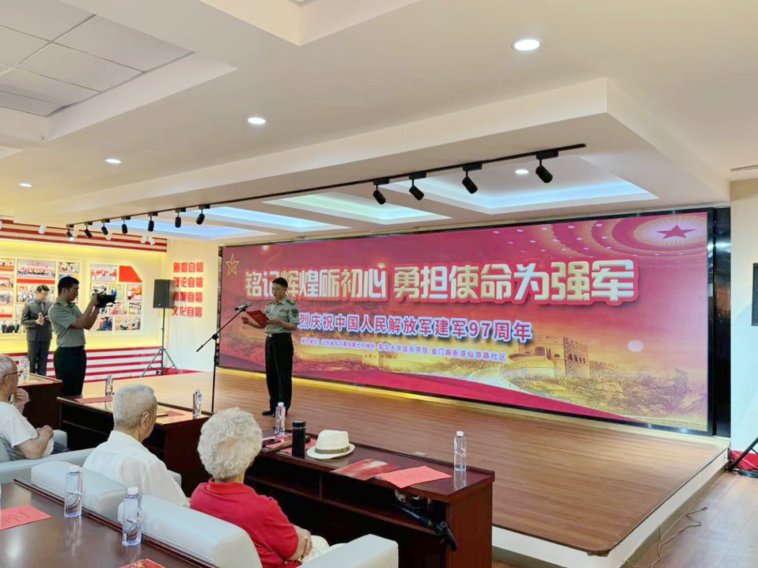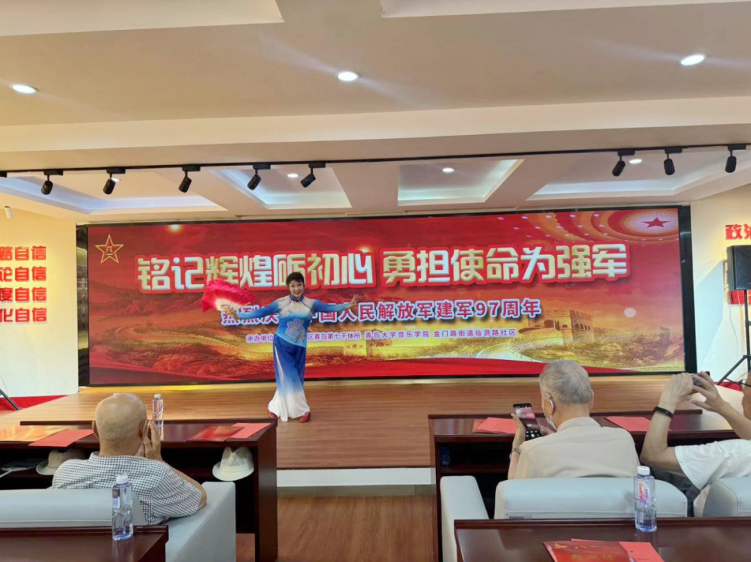 7月30日上午,金门路街道仙游路社区走进辖区山东省军区青岛第七干休所,开展“铭记辉煌砺初心 勇担使命为强军”军民共建文艺演出活动。