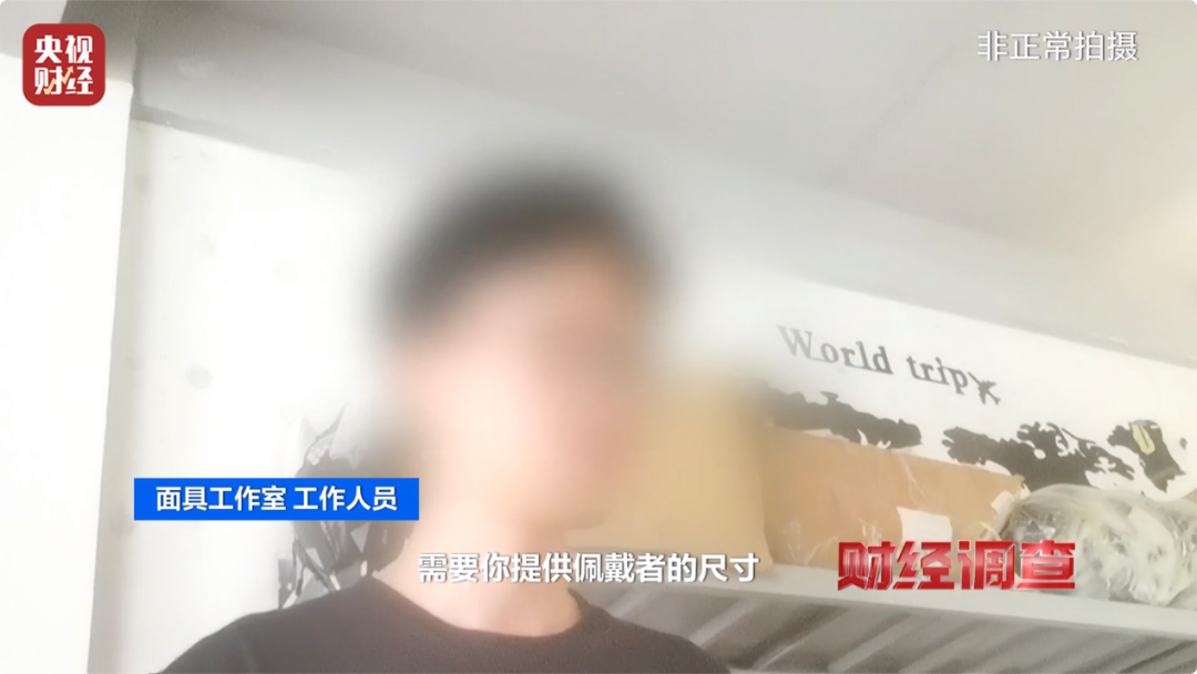 为了验证这些产品的真假,记者在客服的指引下来到了一家网店的线下工作室。工作人员向记者介绍只有硅胶人脸的面具售价3200元,带植发的6800元,定制的则需要15600元,并且需要提供面部特征的数据。