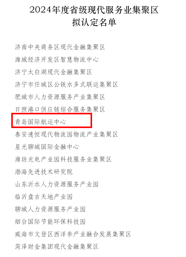 山东省发展和改革委员会关于2024年度山东省现代服务业集聚区名单的公示
