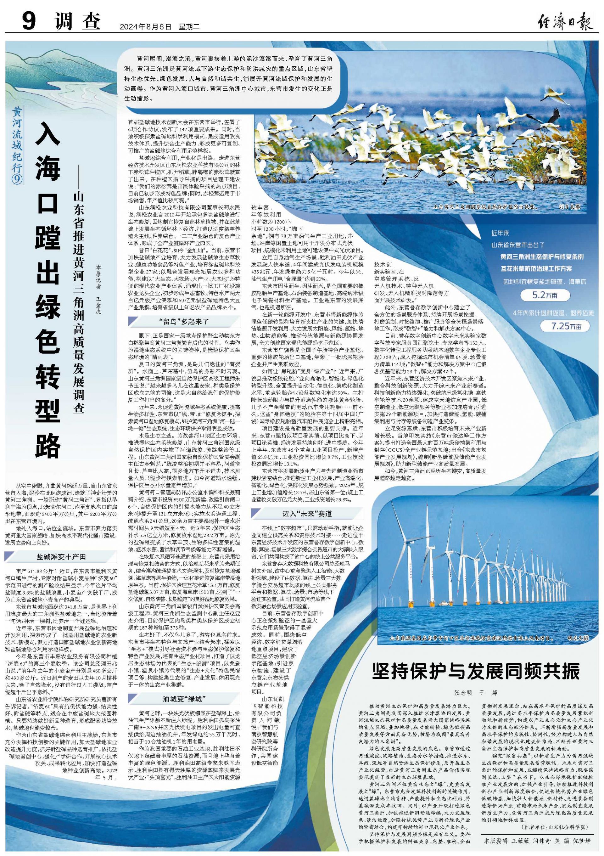 黄河尾闾,渤海之滨,黄河裹挟着上游的泥沙滚滚而来,孕育了黄河三角洲。黄河三角洲是黄河流域下游生态保护和防洪减灾的重点区域,山东省坚持生态优先、绿色发展、人与自然和谐共生,铺展开黄河流域保护和发展的生动画卷。作为黄河入海口城市、黄河三角洲中心城市,东营市发生的变化正是生动缩影。