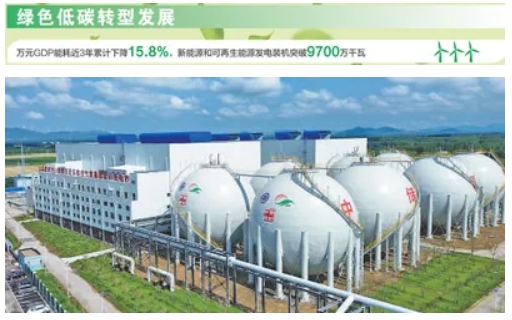 推动绿色低碳转型发展。深入推进降碳、减污、扩绿,万元GDP能耗近3年累计下降15.8%;新能源和可再生能源发电装机突破9700万千瓦,PM2.5平均浓度近3年下降19%,地表水国控断面优良水体比例达83.7%。