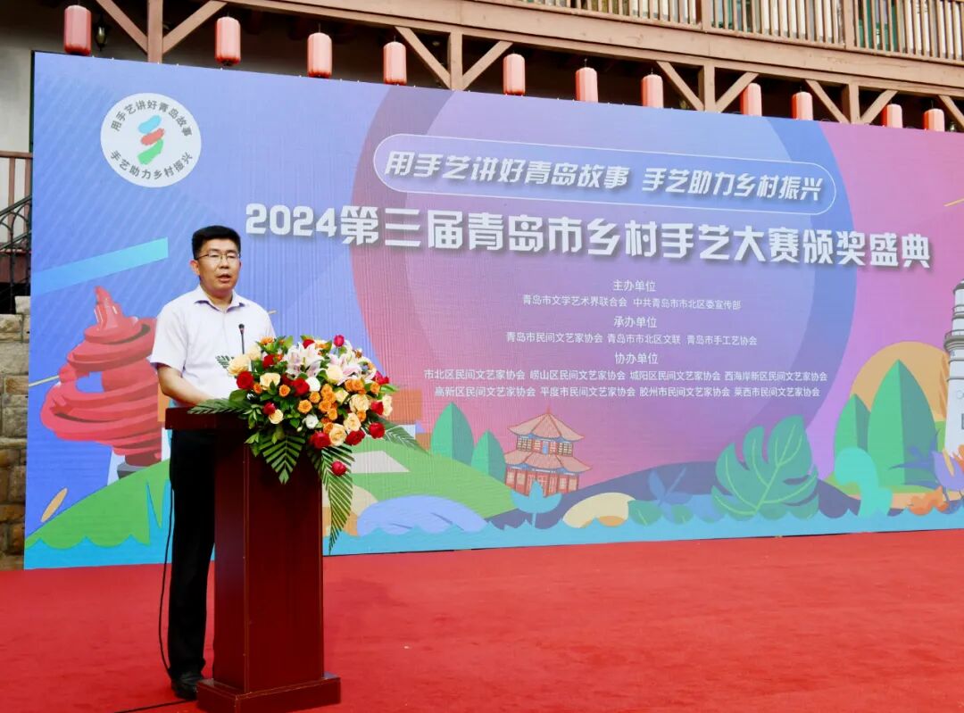 2024第三届青岛市乡村手艺大赛是青岛市第三届农民艺术节和山东手造的重要板块之一。由青岛市文学艺术界联合会、中共青岛市市北区委宣传部共同举办的第三届青岛市乡村手艺大赛决赛于8月5日下午在青岛大鲍岛广兴里举办。自5月份发布通知以来,在三个月的时间内共征集参赛作品300余件。组委会邀请我市民间文艺界知名专家组成评审团,经过认真严肃、公平公正公开的评审后,遴选出71件作品入围决赛。决赛现场,来自青岛市各区、市的69位选手带来了形式多样的参赛作品并现场进行了制作展示,这些作品囊括了雕刻、剪纸、刺绣、烙画、泥塑、面塑、陶艺、锔艺等诸多门类,主题突出、风格各异、形象鲜活,艺术表现力、感染力强,技艺上既承继传统,又勇于创新,具有浓郁的时代特色和乡村生活气息,展示了青岛市广大民间艺术家们丰硕的创作实绩。现场制作环节将观众们带入了民间手工艺多姿多彩的天地,参赛选手们或剪裁、或雕琢、或描绘、或制作,围绕着“用手艺讲好青岛故事、手艺助力乡村振兴”的主题表达了创作者对新时代新乡村的观察与理解,体现了青岛市广大民间艺术家高水平、高水准、高境界的技艺。