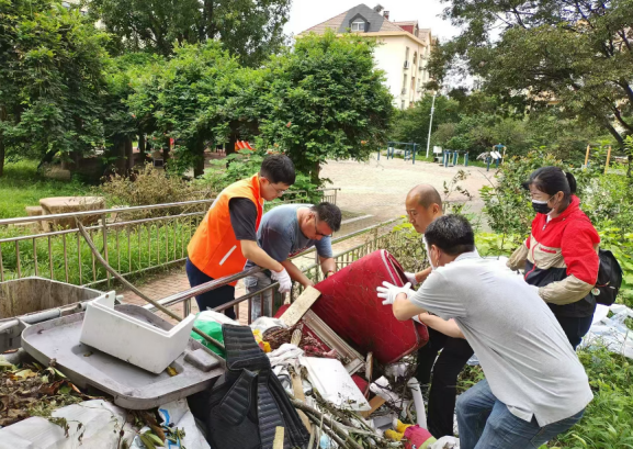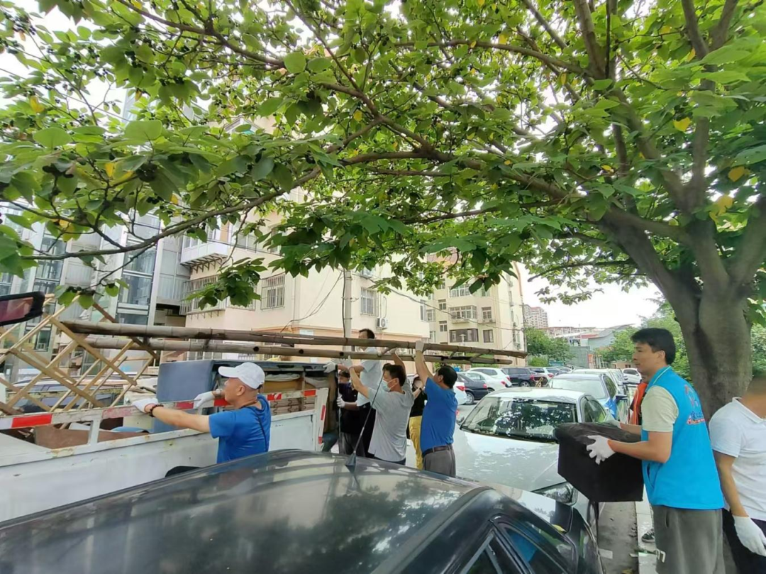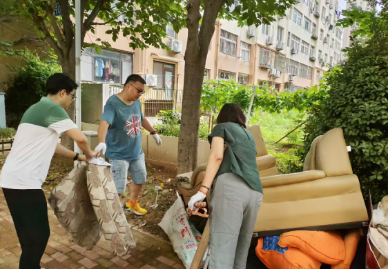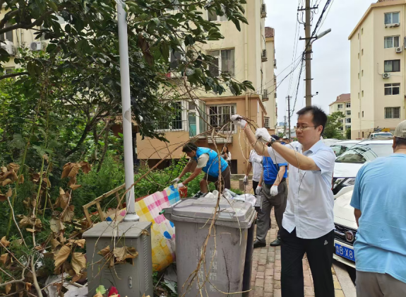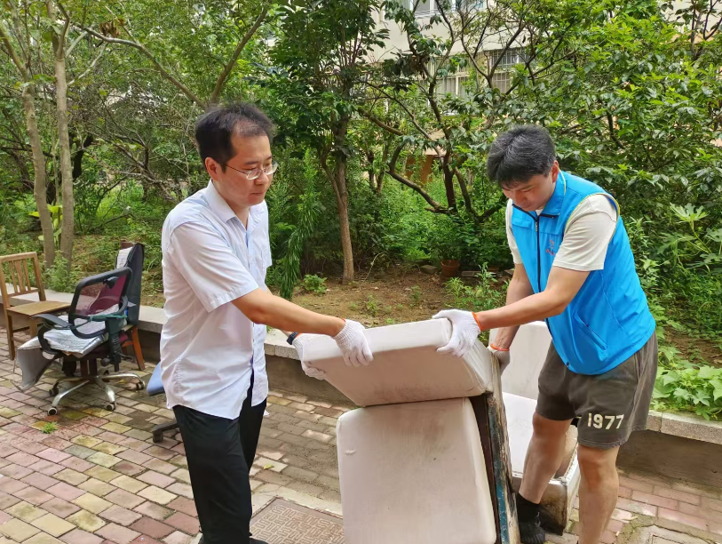 在高温天气下,党员发挥模范带头作用,不怕热、不怕脏,手持扫帚、簸箕等,针对小区的大件垃圾进行清理,坚决维护社区环境。在大家的共同努力下,清运出满满一车的大件垃圾。