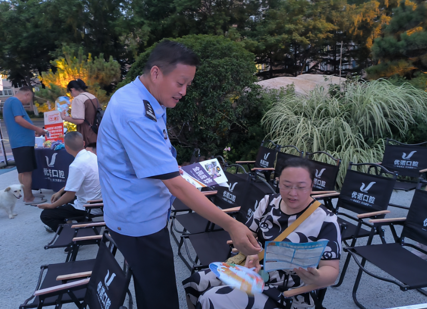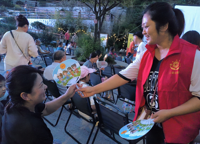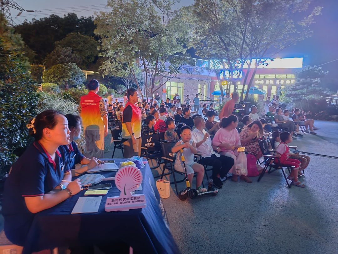 傍晚时分,社区工作人员与志愿者们便早早来到现场,为活动的顺利开展做好了准备。不一会儿宁乐广场逐渐围满了前来观影的居民,大家三五成群地围坐在一起,聊天、交流,气氛十分融洽。电影放映前,社区还进行了反诈宣传、工会服务宣传、文明旅游宣传等活动。