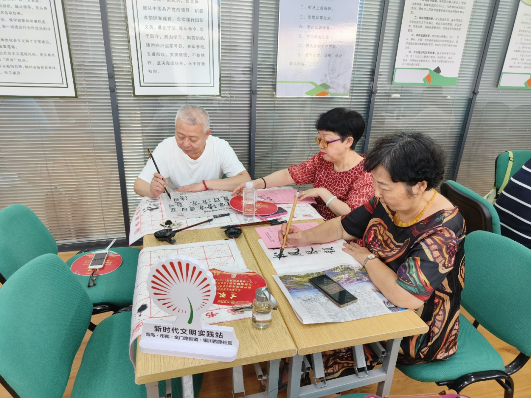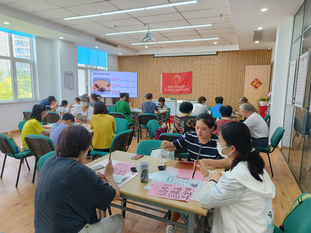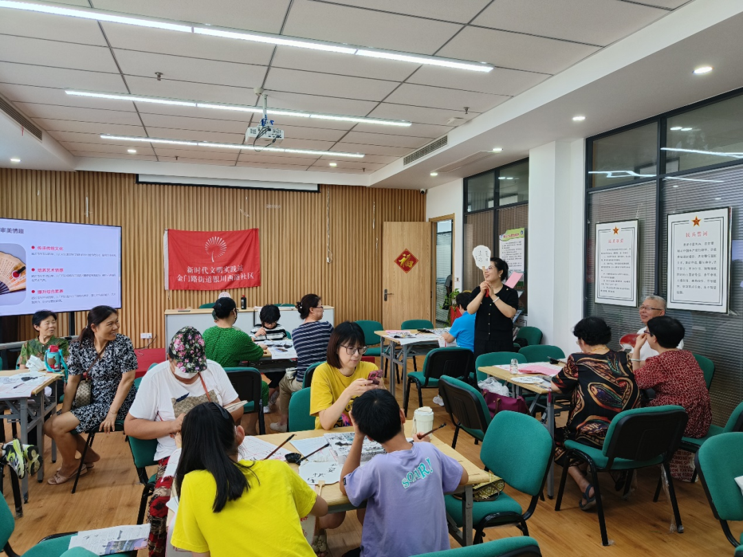 8月15日上午,金门路街道银川西路社区、街道总工会联合市南区文旅局举办了一场别开生面的书法团扇课活动,吸引了众多社区居民的参与。