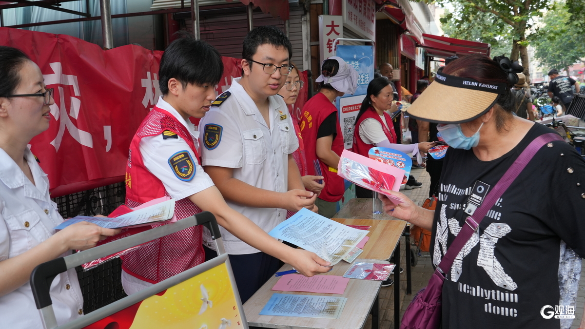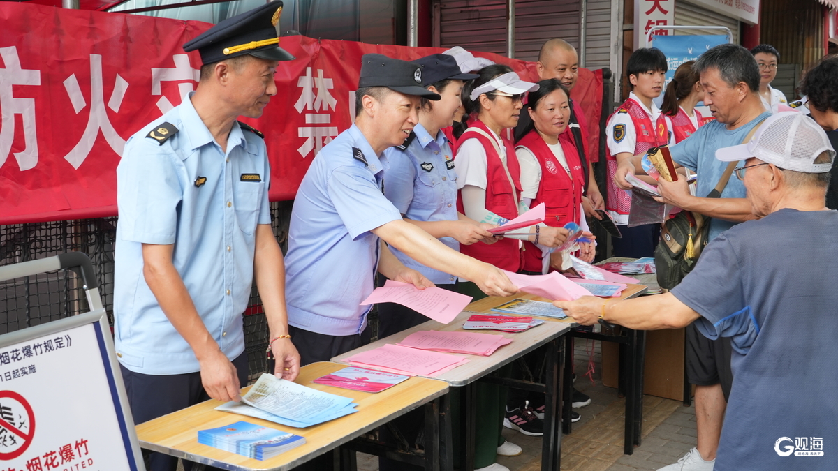 青岛日报社/观海新闻8月19日讯 为切实保障人民群众生命财产安全,减少城市环境污染,青岛市公安局携手青岛城运控股集团在市北区康定路农贸市场联合开展禁止燃放烟花爆竹宣传活动。