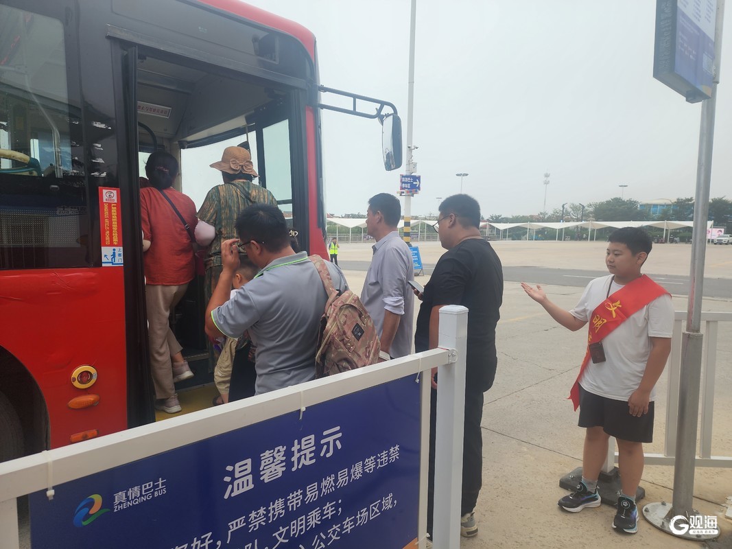 曾宪秀了解情况后,不禁为谭子祺点赞,“小小的孩子就能志愿帮助别人,真是好样儿的!”随后,两人互相添加了微信好友,谭子祺在父母的支持下,与曾宪秀相约在啤酒节期间一起开展志愿活动。啤酒节开幕后,根据约定,每当曾宪秀班次合适时,她便带着谭子祺和自己的儿子来到啤酒城公交首末站,一起维持乘车秩序,做好外地乘客的“向导”。