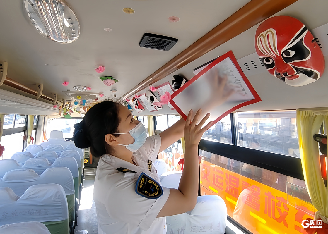 除此以外,为让“大鼻子”校车,以崭新的面貌迎接乘车学生,校车人员对车辆进行全面卫生清理,将清洗干净的座套、座帽换好,将精心制作的折纸、手抄报等装饰品悬挂、粘贴到车厢内,打造“文明出行”“红色教育”“环境保护”“传统文化”等主题的德才教育车厢。