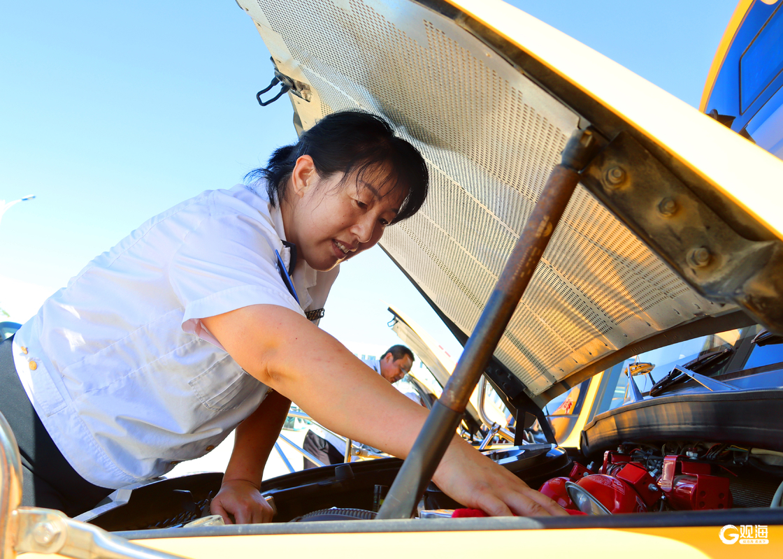 “鲁BT1211右前刹车软管松动漏气,现场完成修复;鲁UA8886左前立柱润滑管裂痕,开进车间进行更换……”在青岛城运西海岸交发集团修理厂,一辆辆校车先后开上检车台,接受开学前的“体检”,检车员、维修工头顶烈日、互相配合,及时处理检出的问题。